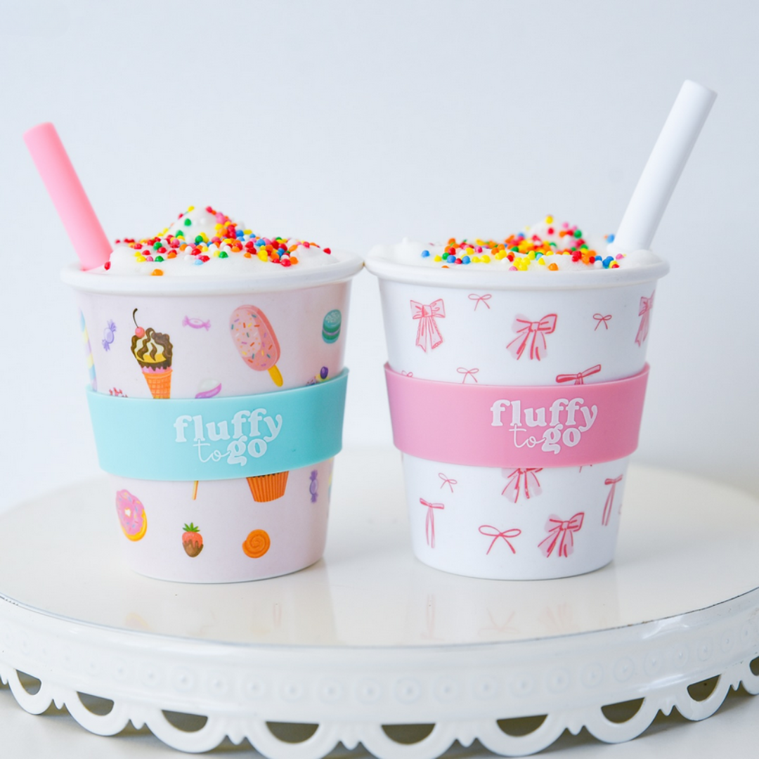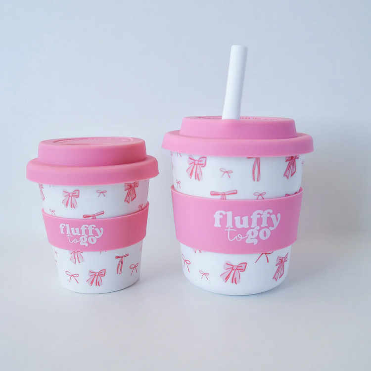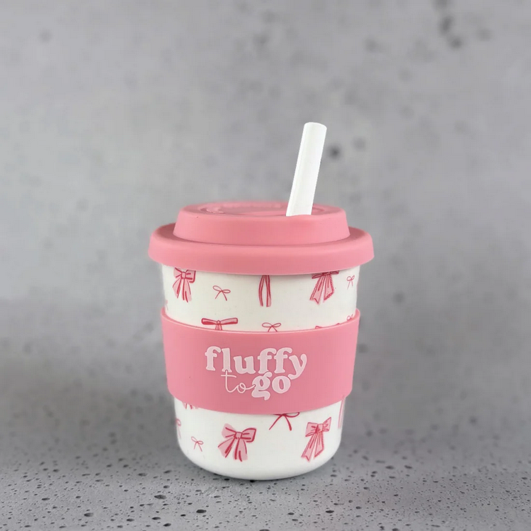 Our bow cup 240ml is perfect for those older kiddies that love hot chocolates or mama who drinks a smaller coffee, they are double the size of our fluffy cups so are great for those that have outgrown a fluffy cup