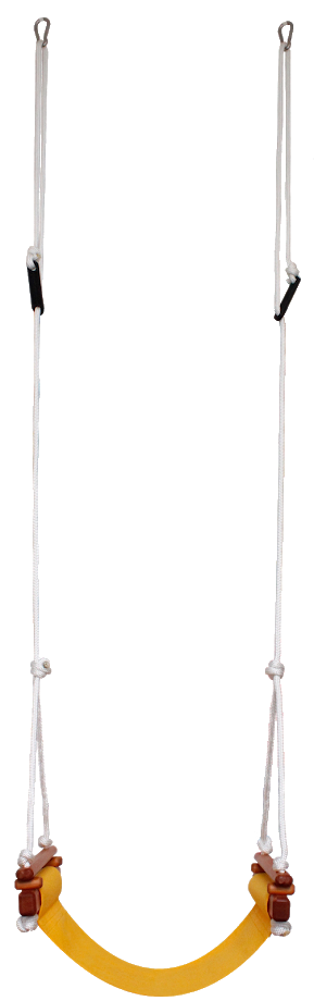 Swings can be mounted in doorways or/and on beams, ceiling joists, verandas, pergolas and swing stands or the like. Screw 2 screw eyes or eyebolts approx. 500mm apart with the holes in the eyes facing forward. It is important to have the eyes facing forward because then the carbine hook will roll and not grind in the eye. Having the ropes going wider apart as they go up helps the swing to swing strait. Adjust the height with the sliding ropelocks. The swings can be hung from a height of 3 meters without extension ropes