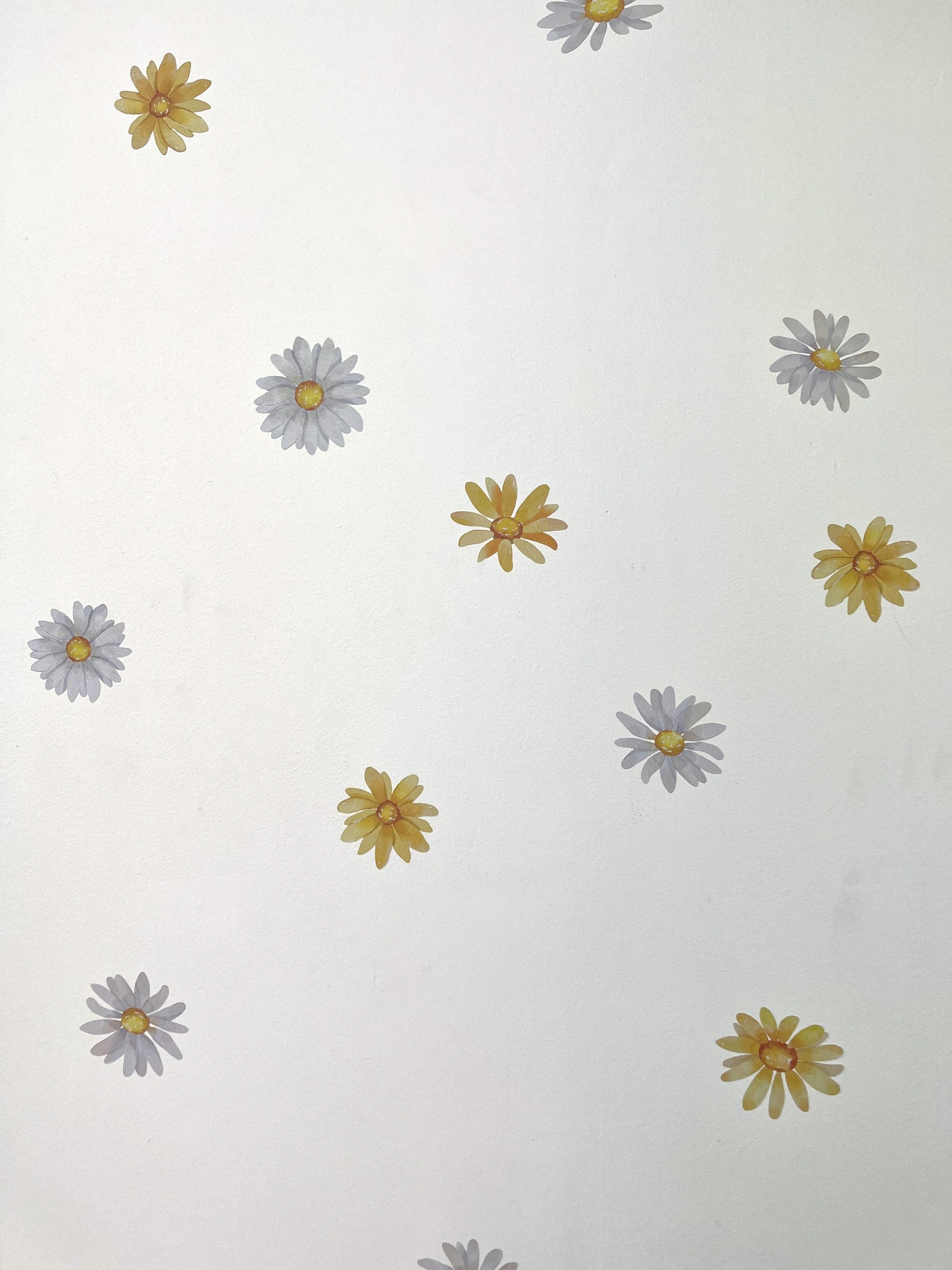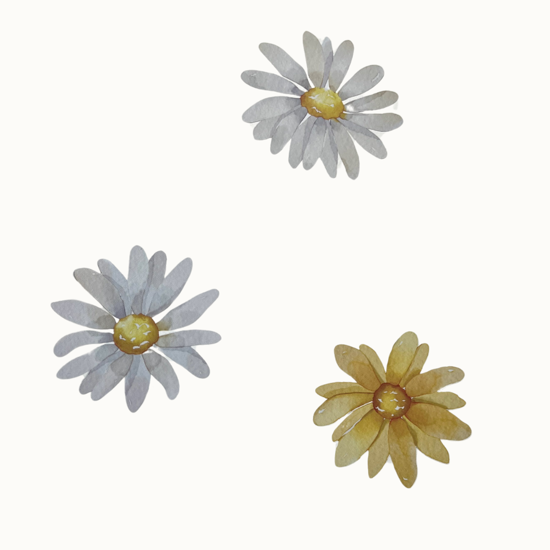 Daisy Watercolour Flower Wall Stickers. Handpainted watercolour Daisies in creamy white and pale yellows.