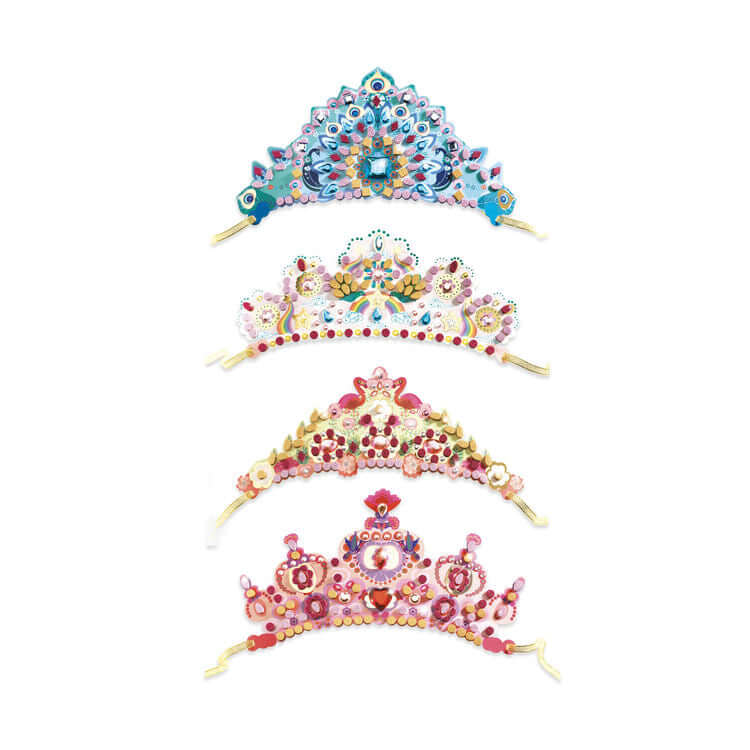 4 elegant princess tiaras to decorate using the self-adhesive mosaic pieces and precious stone stickers provided.