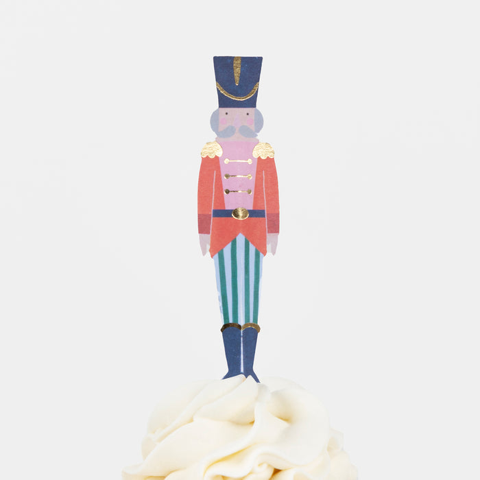 Bring the timeless magic of the Nutcracker ballet to your party by serving Christmas cupcakes made with this special cupcake kit. It includes iconic character cake toppers and striped cupcake cases, in a stylish blend of classic and modern colors. A chic and practical way to capture the charm of this enchanting fairy tale, and add a touch of tradition to your treats.