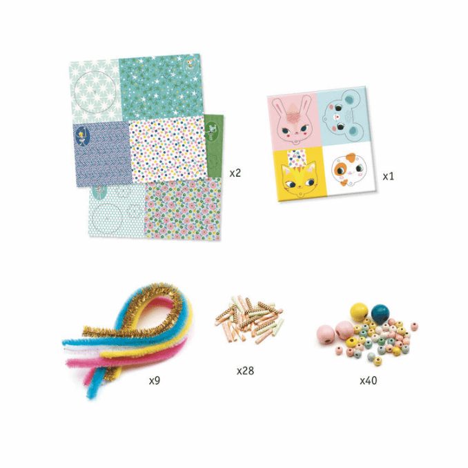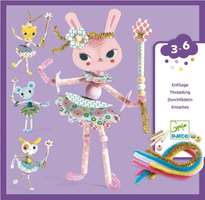 Using the provided beads and accessories thread the pipe cleaners and create silly characters.