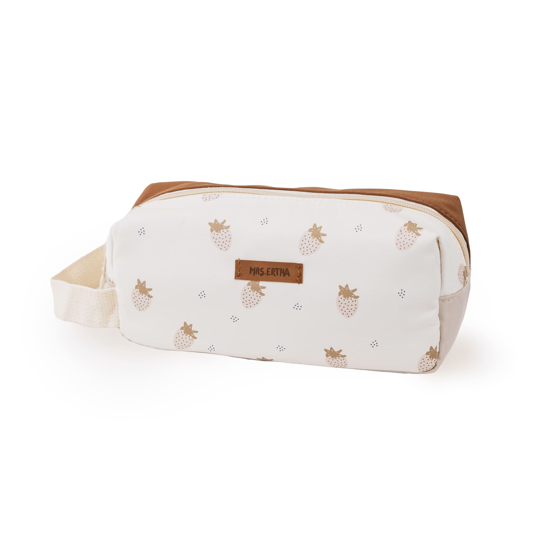 New pencil case with strawberry pattern. Perfect for the new school year and to match our backpack in the same pattern 🤍 The material of this pencil case is light and waterproof. The main compartment has a large zipped opening, which makes it easy to use. One size : 21 x 10 x 6 cm