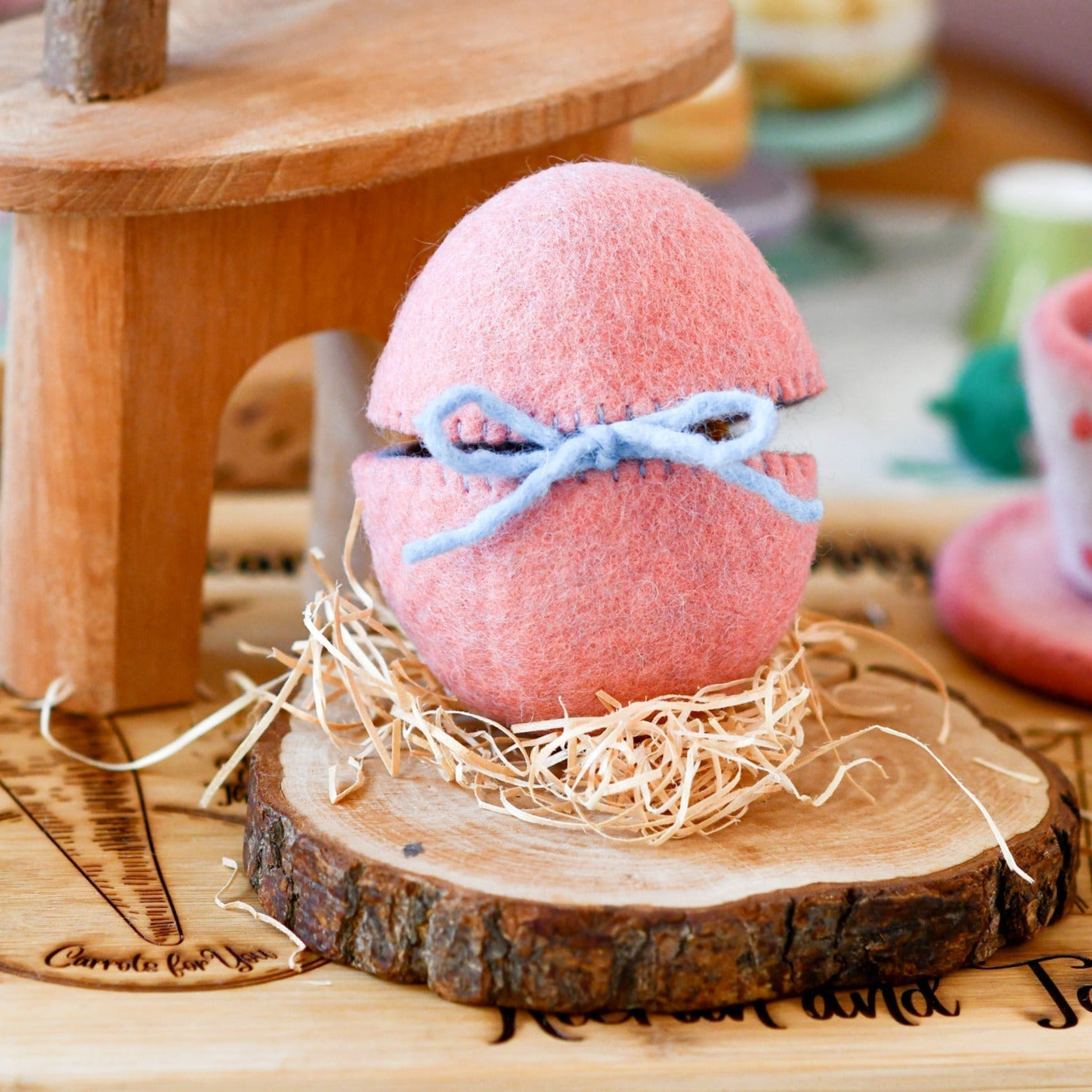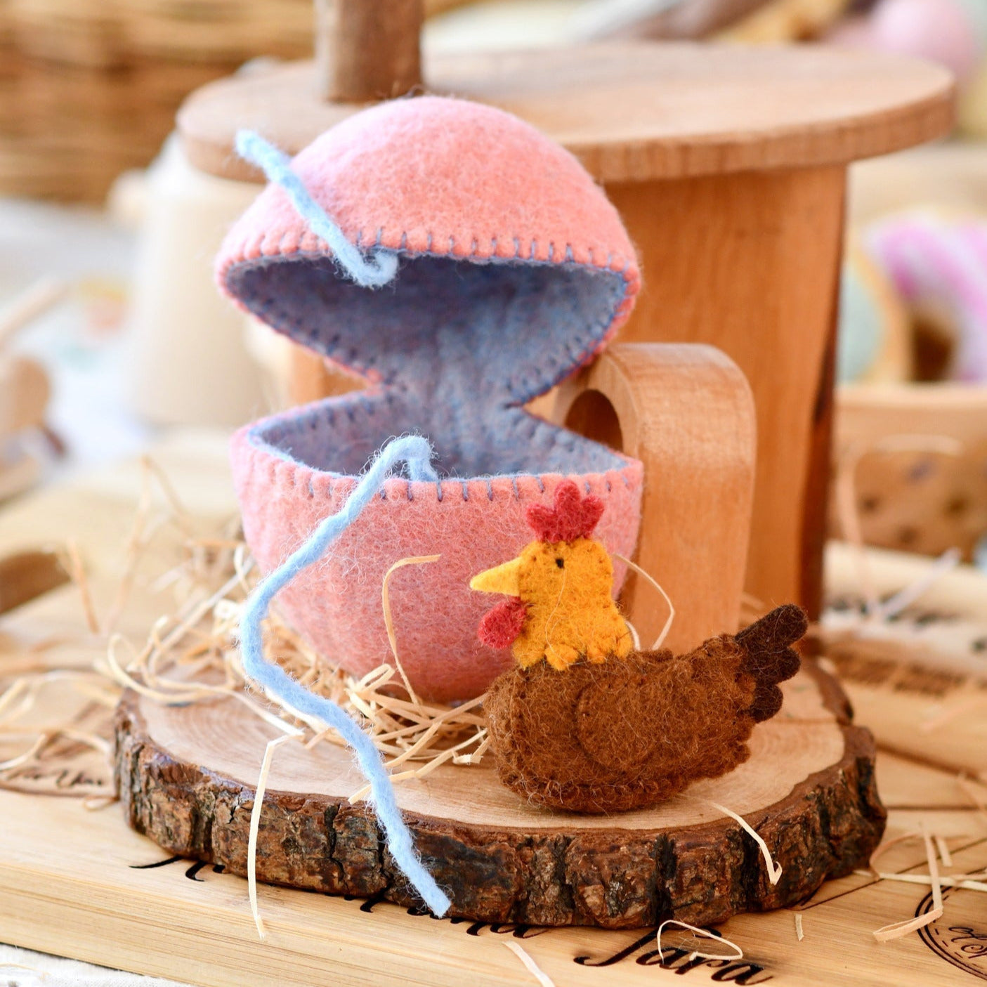 Hatch Easter joy with our delightful Felt Surprise Egg featuring a charming hen inside! The real magic happens when untie the ribbon of the egg to reveal the adorable surprise hidden inside. This sweet hen is able to stand by itself and make such a great addition to small world play.