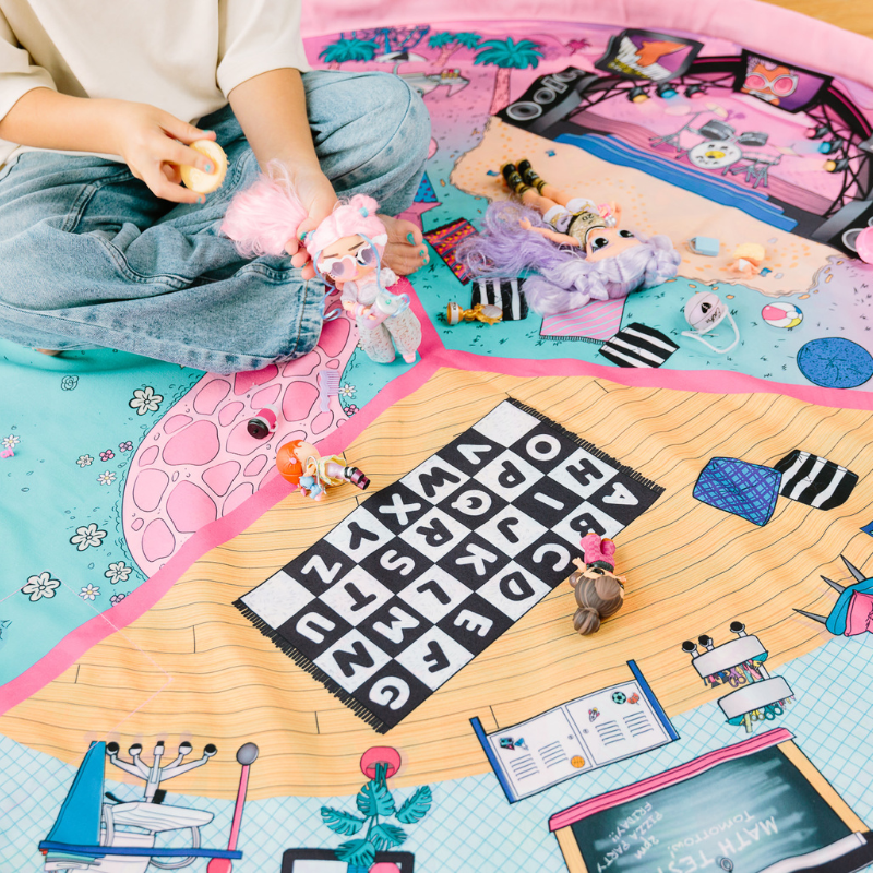 When it’s time to pack away, simply pull on the ropes to gather LOL dolls and accessories neatly away inside the Play Pouch!