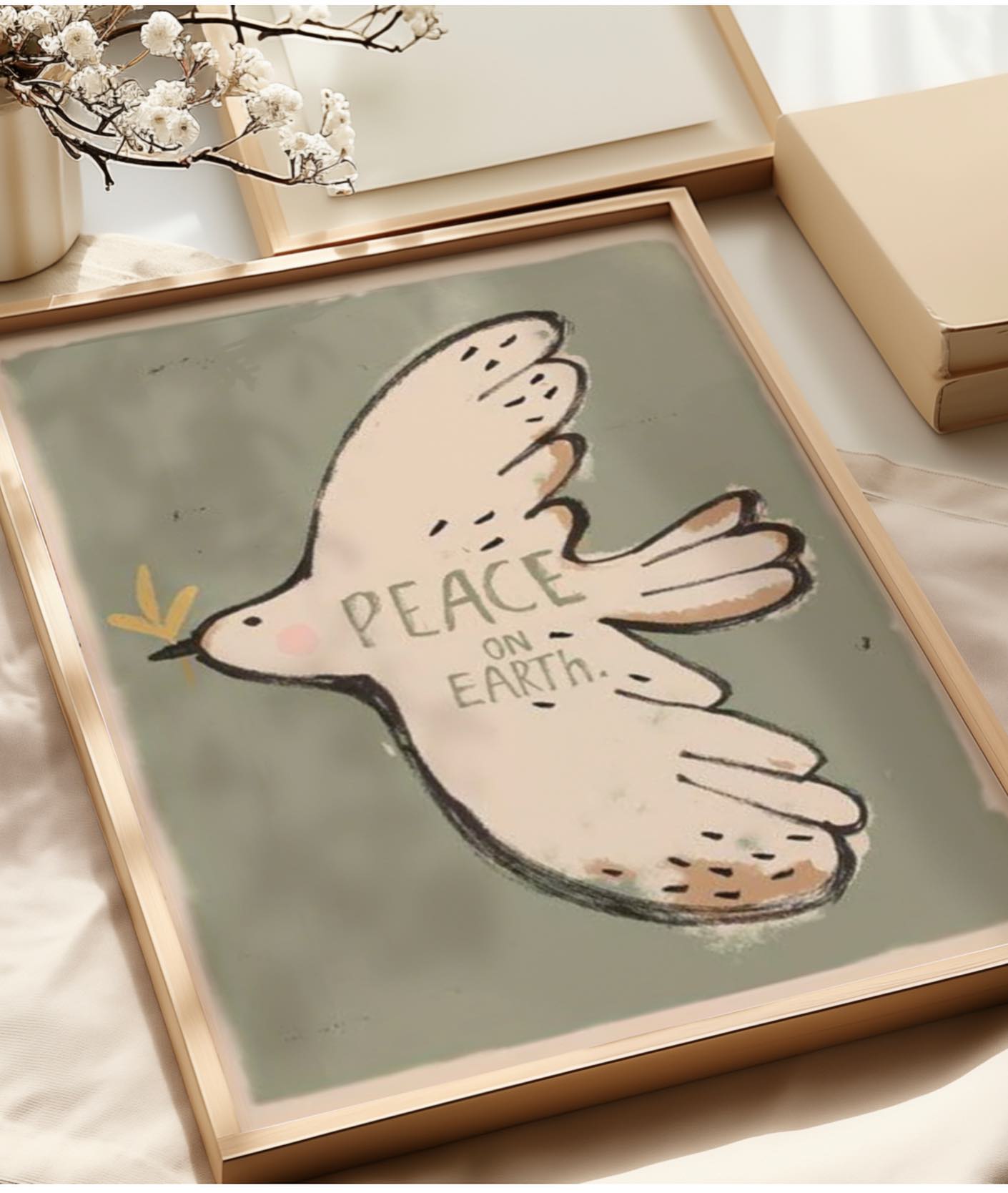Bring tranquility to your child's space with Studioloco's 'Peacebird: Peace on Earth' poster – a beloved design promoting global harmony