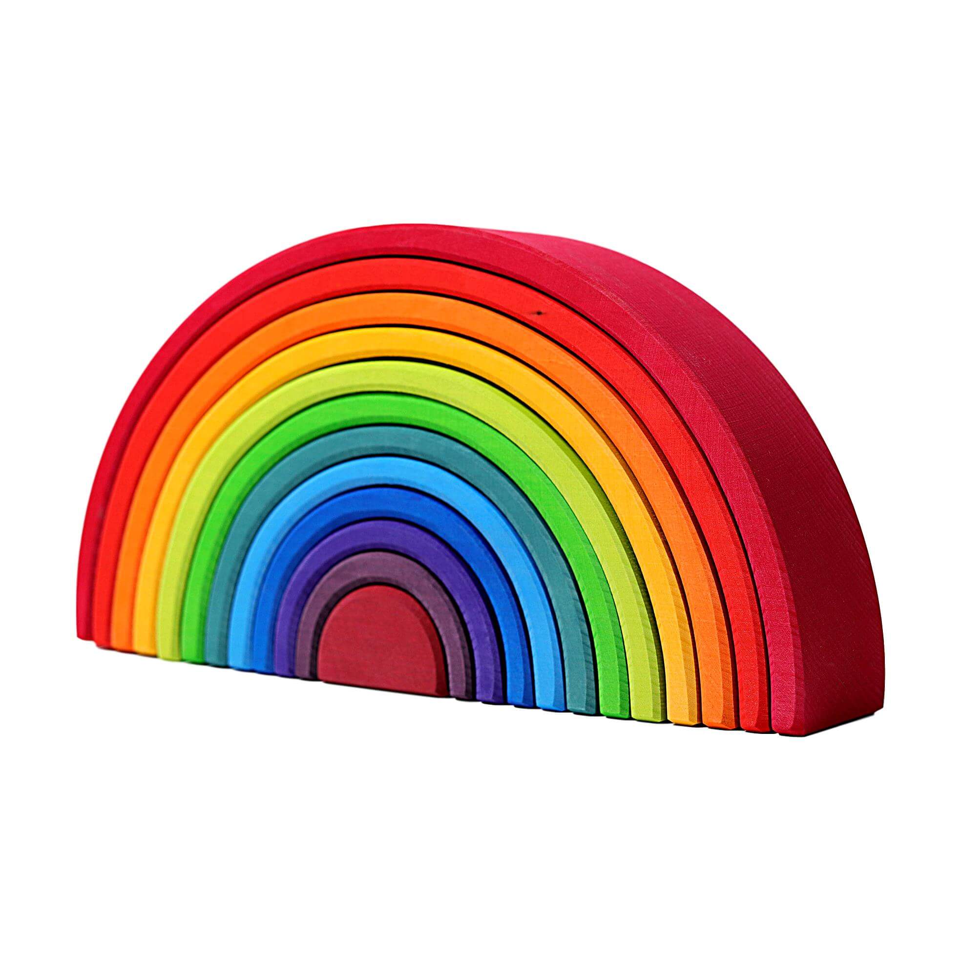 This stacking wooden puzzle is a great versatile toy, representing the element of air. This large rainbow tunnel can be used as a bridge, tunnel, fence or small house. Alder, 12-pieces. Coloured with non toxic water based dyes.