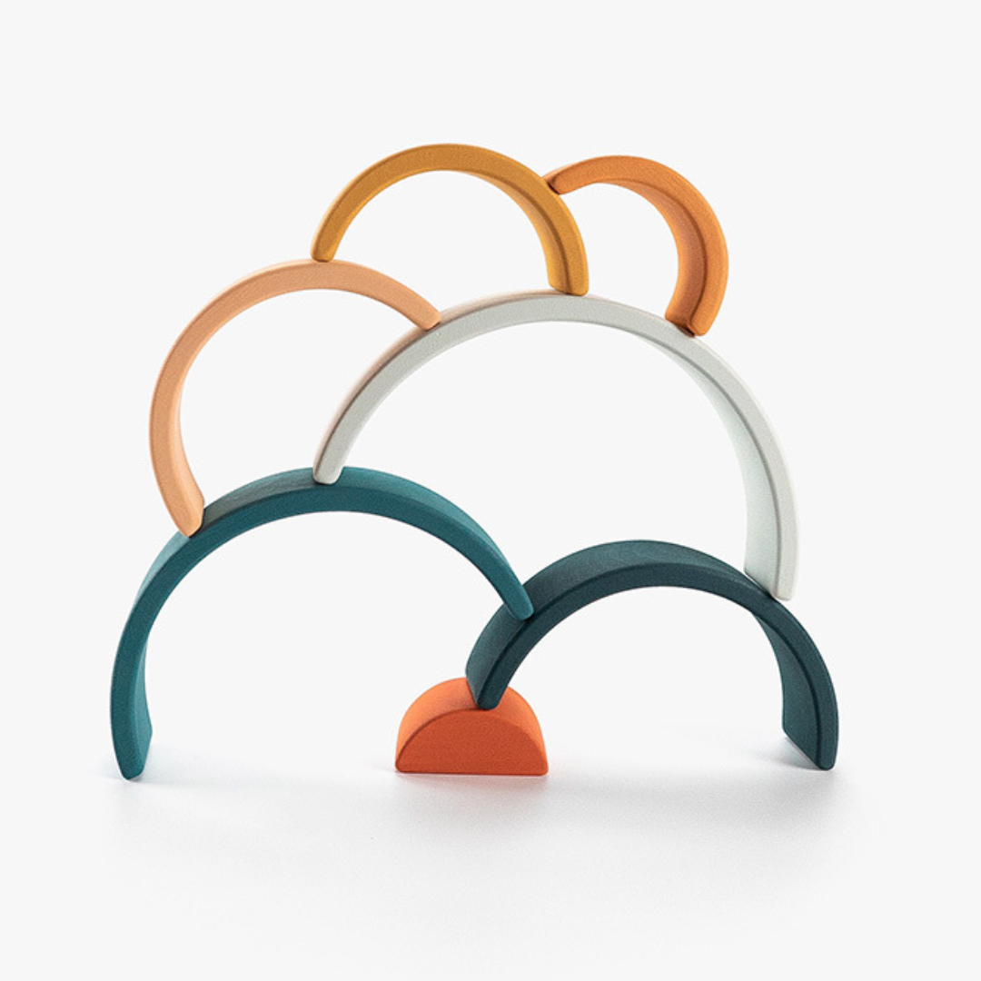 Playing with stacking rings is fun: kids build towers, roll them and catch (helps to develop reaction), use as templates for drawing circles. Also, children use them in imaginative play: rings can be islands, paths, boats, plates, wheels or anything they will imagine.
