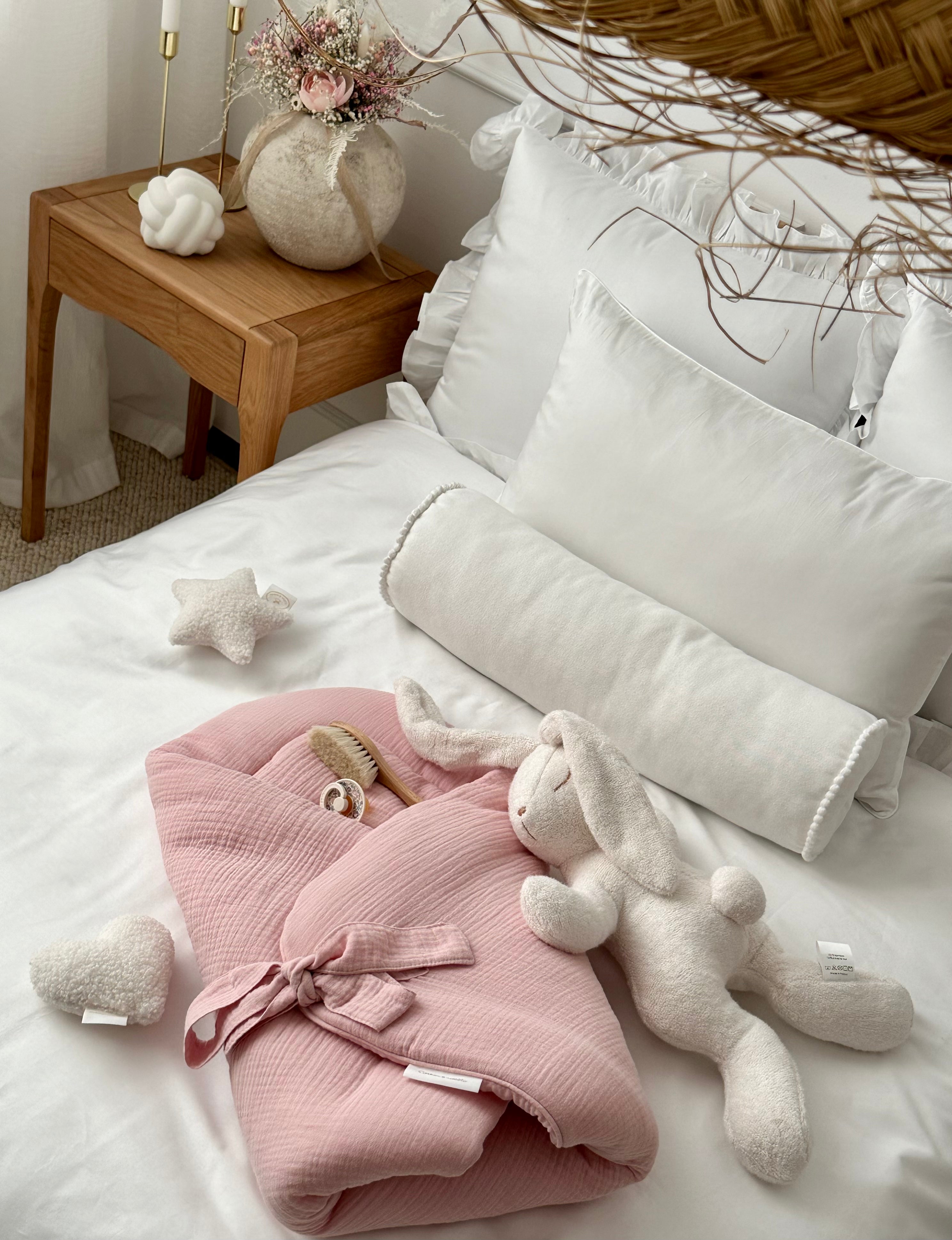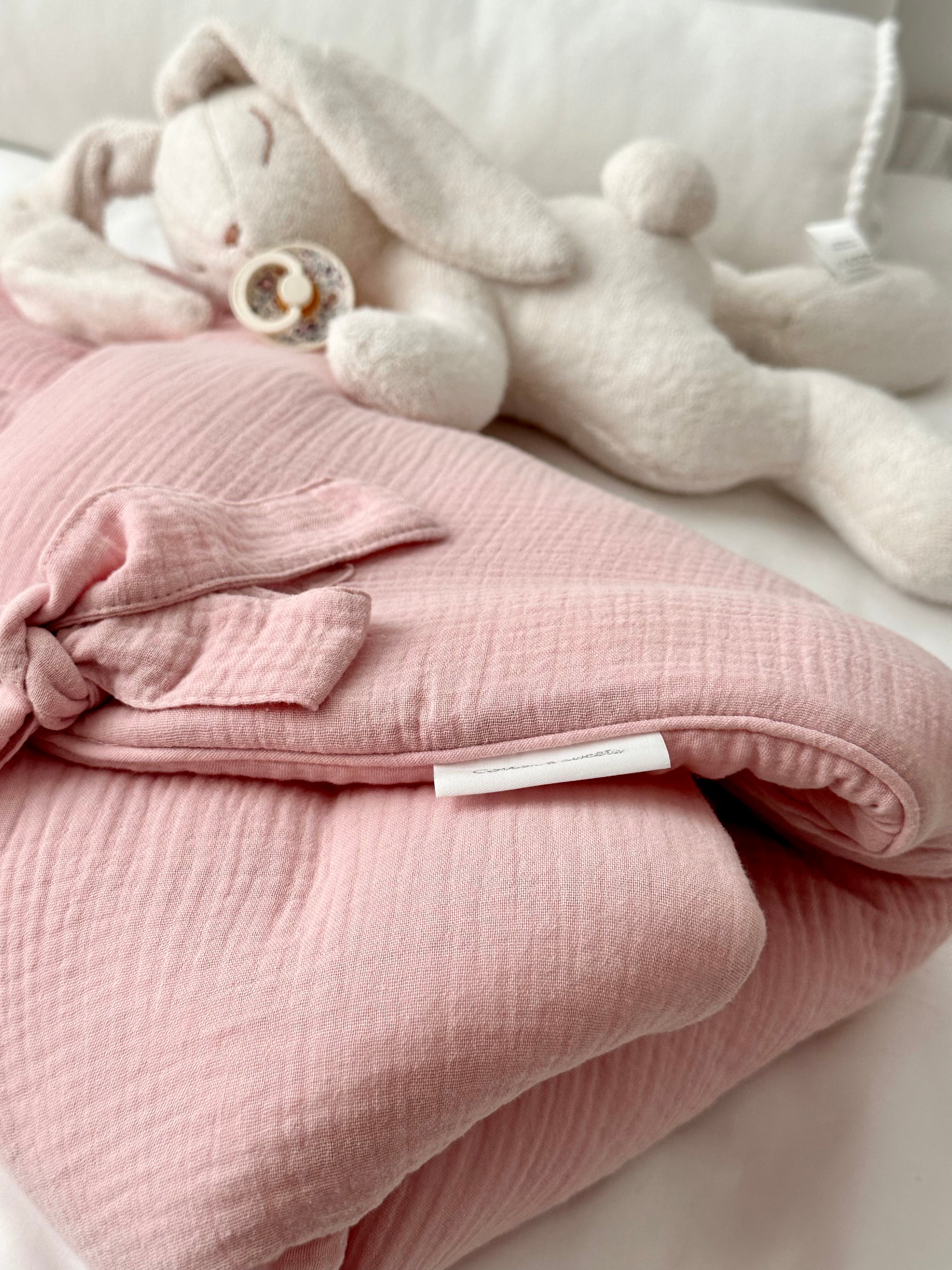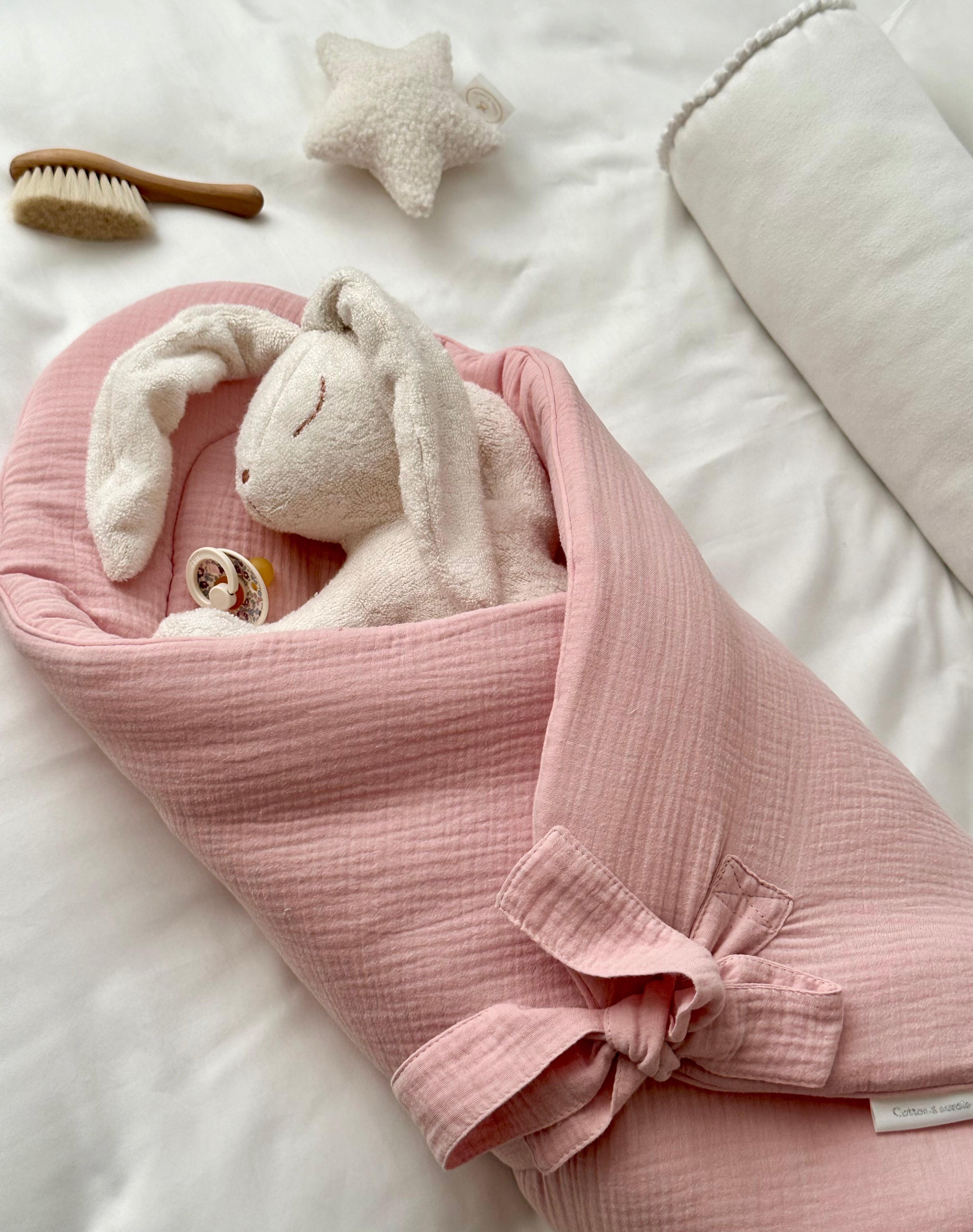 The muslin baby wrap guarantees the child a sense of security from the moment of birth. The muslin cone in beige gently wraps the baby's body, thanks to which the baby quickly calms down and falls asleep.