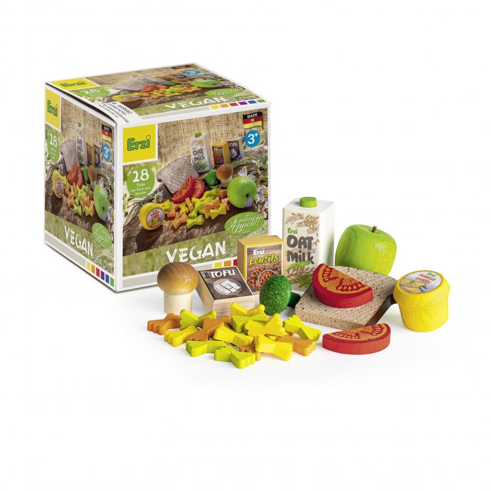 1 bottle of oat milk, 1 packet of lentils, 1 tofu, 1 slice of bread, 1 spread, 1 mushroom, 1 broccoli floret, 1 apple, 2 half slices of tomato, 18 colourful coloured noodles