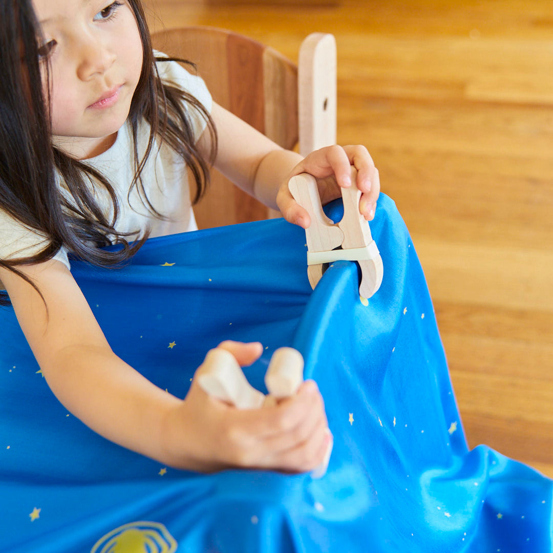 - Open-ended play with Playsilks allows children to express their imagination and support their independence.