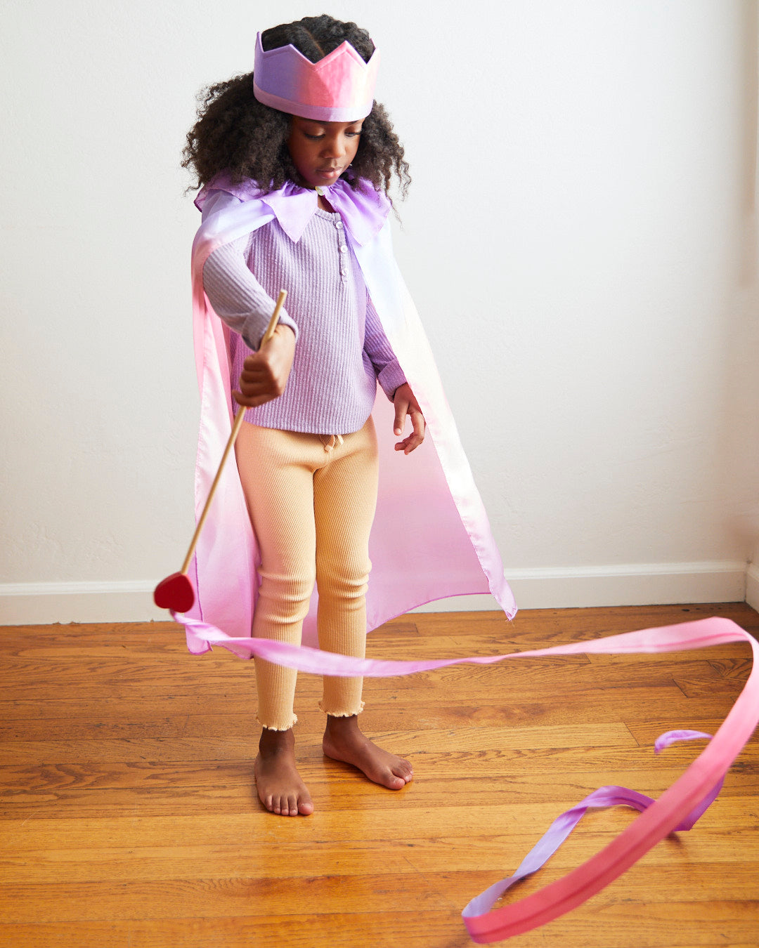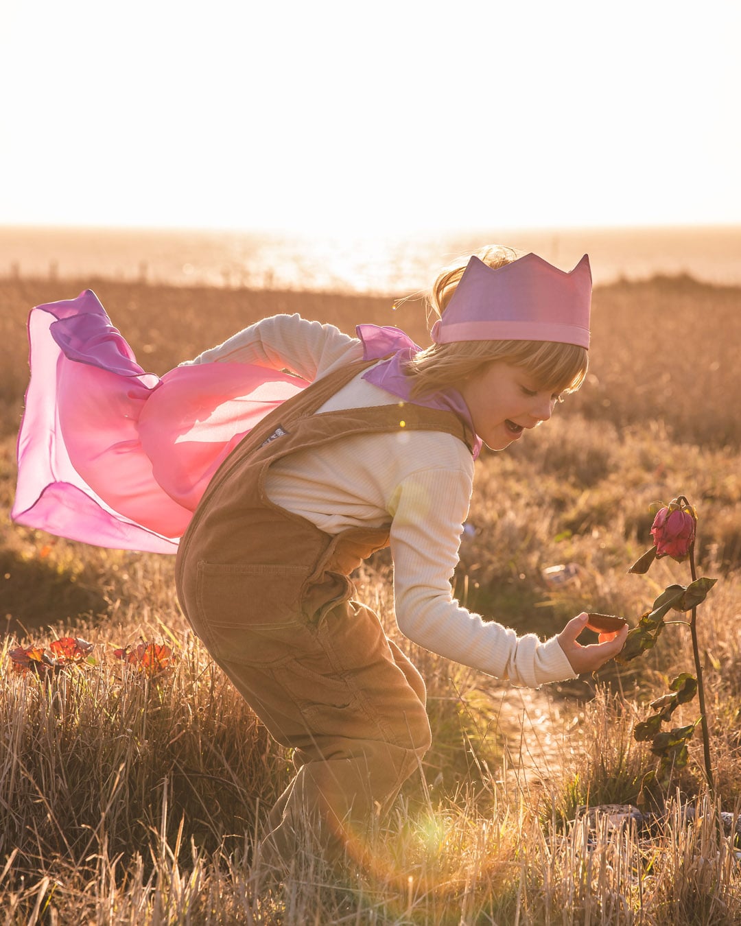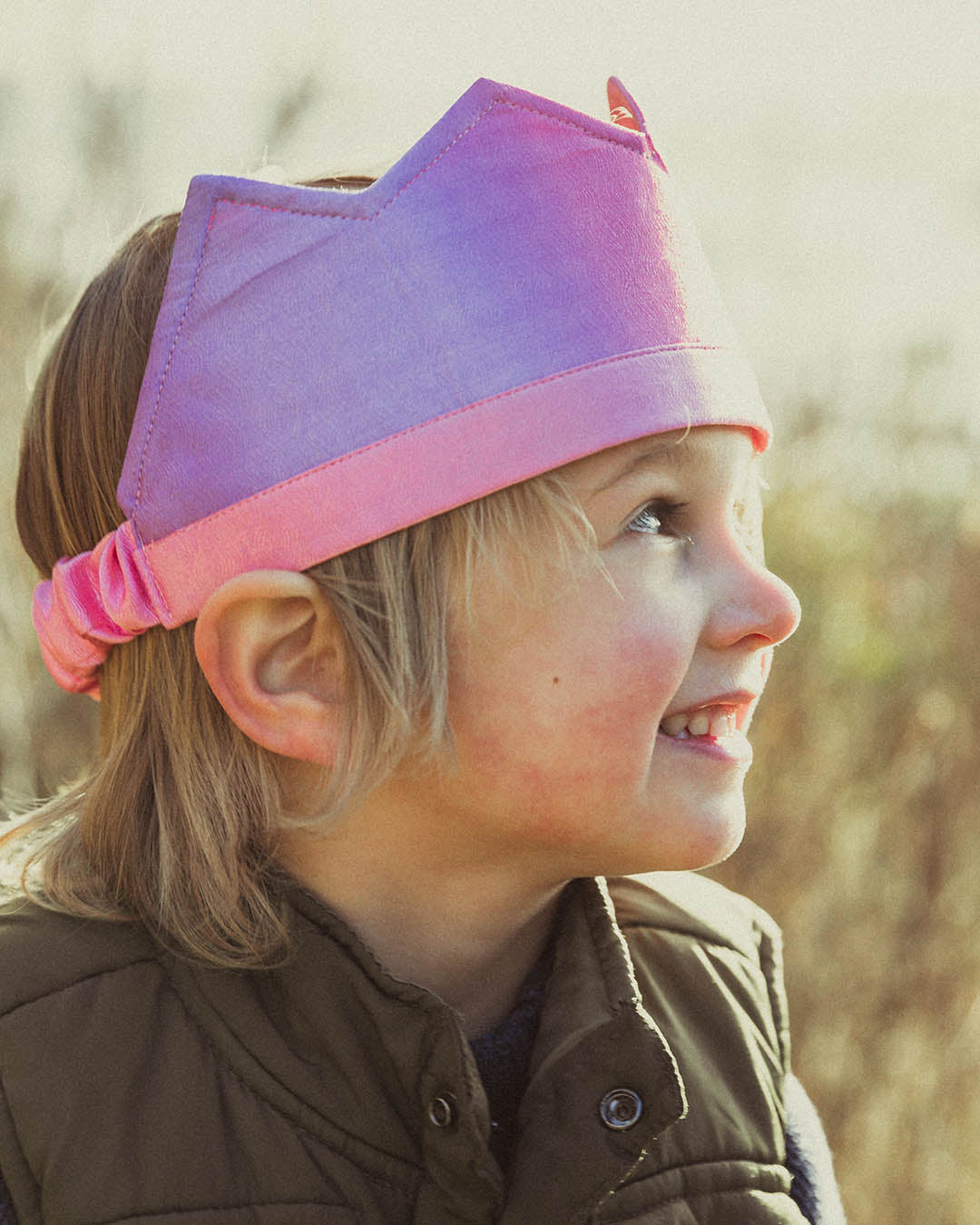 Our Silk Crowns are shiny, beautiful, and fit comfortably! The elastic back allows them to stretch to fit most head sizes. Hand-painted on luminously textured jacquard silk in our most beloved colorways. Children will love incorporating crowns into daily dress-up and imaginative play, plus they're perfect for birthdays and other celebrations!