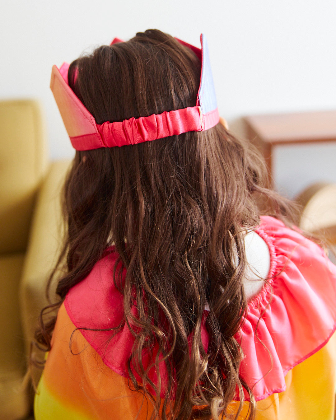 Our Silk Crowns are shiny, beautiful, and fit comfortably! The elastic back allows them to stretch to fit most head sizes. Hand-painted on luminously textured jacquard silk in our most beloved colorways. Children will love incorporating crowns into daily dress-up and imaginative play, plus they're perfect for birthdays and other celebrations!