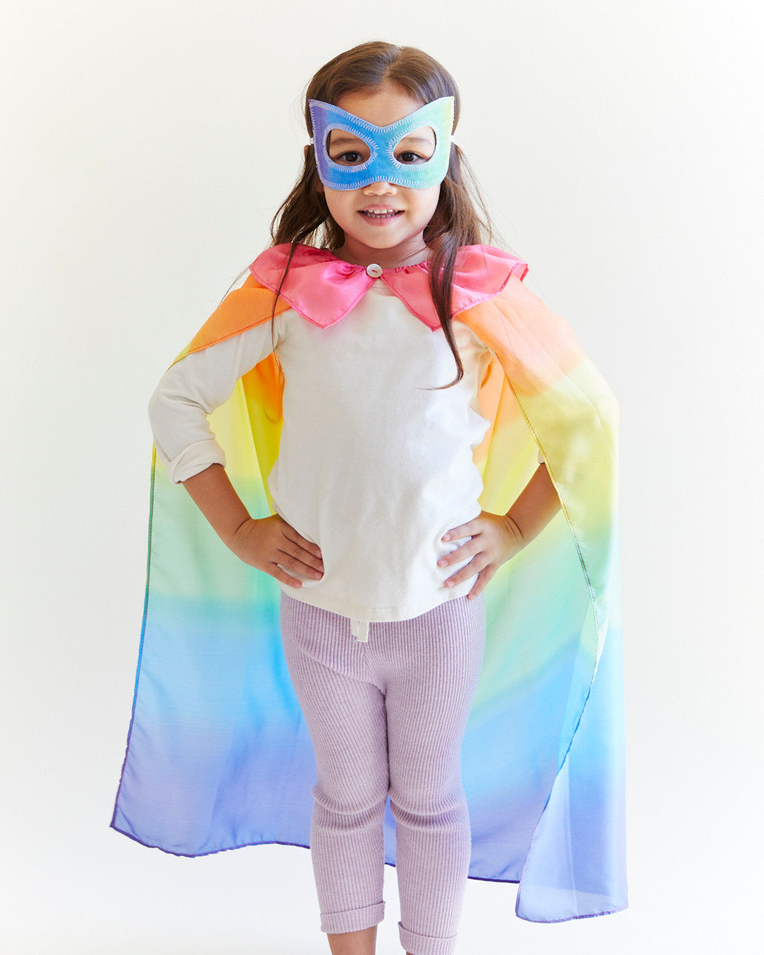 Magical adventures await with our new Silk Jacquard Masks! Our Rainbow Mask is the perfect dress-up accessory for pretend play that meets little ones' sensory needs. Crafted with 100% pure mulberry silk in vibrant green and blue colors, it offers a comfortable fit for hours of pretend play and imaginative fun!