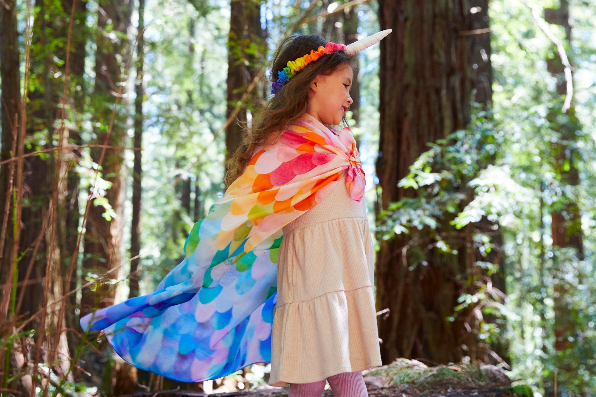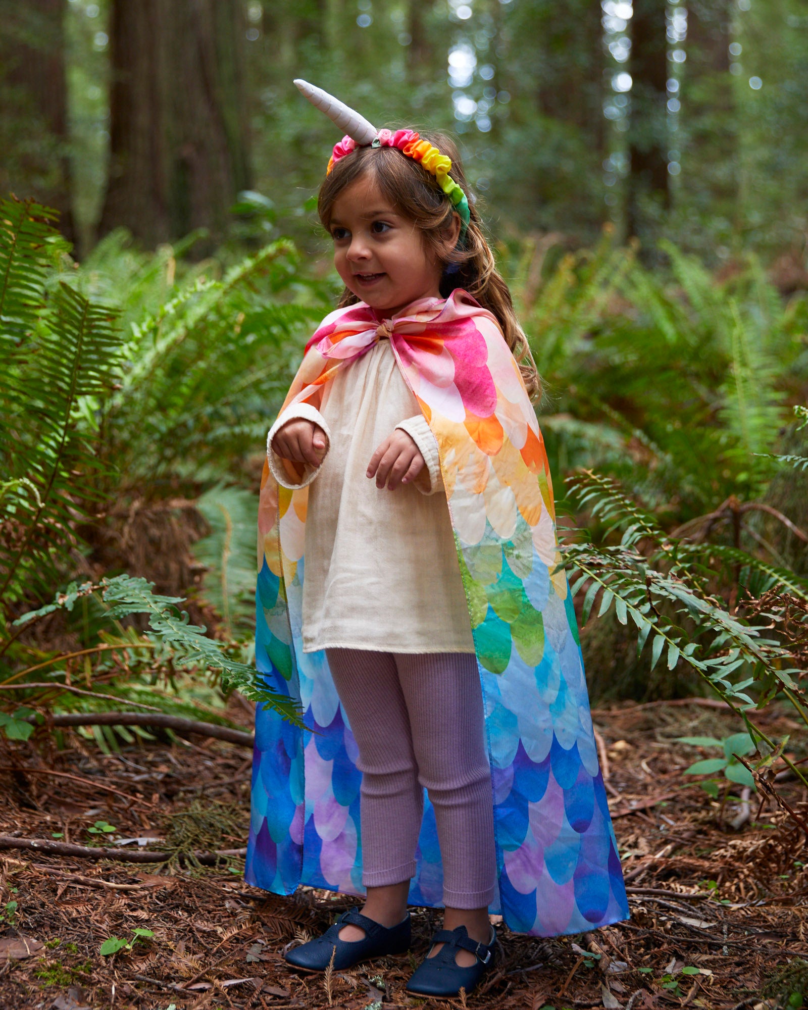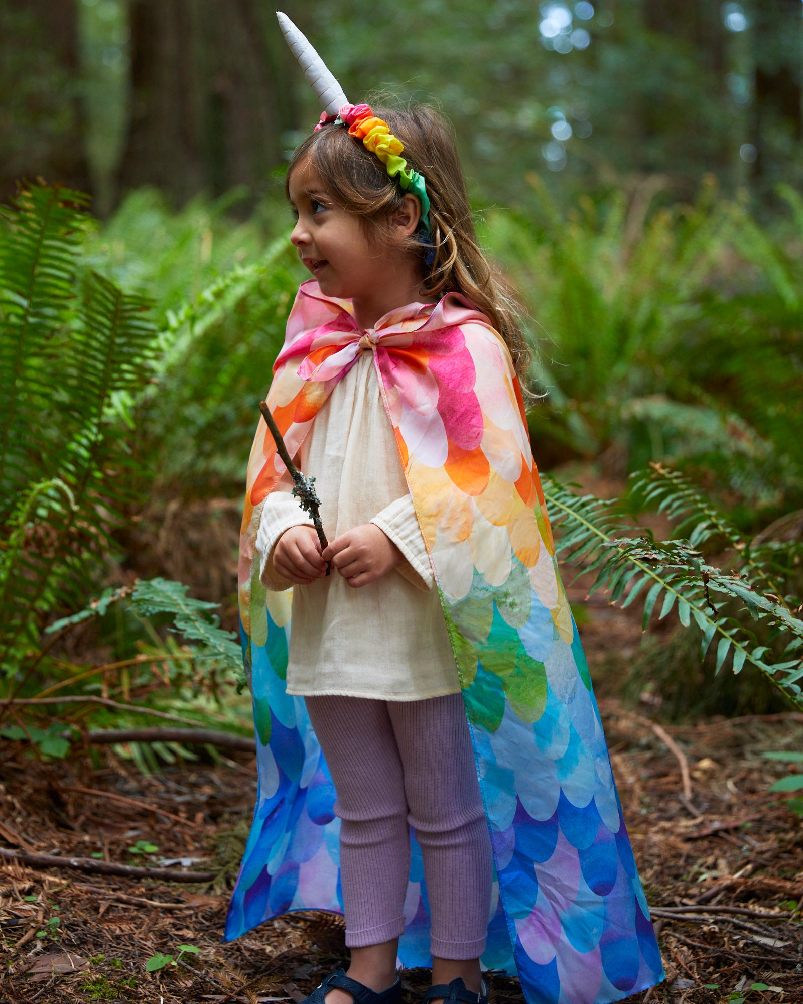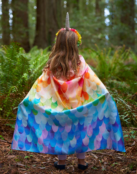 Magical Creatures Playsilks are 35 x 35-inch squares made from gorgeous, heavyweight (8 momme) 100% pure silk and printed in our limited edition Rainbow Unicorn print.