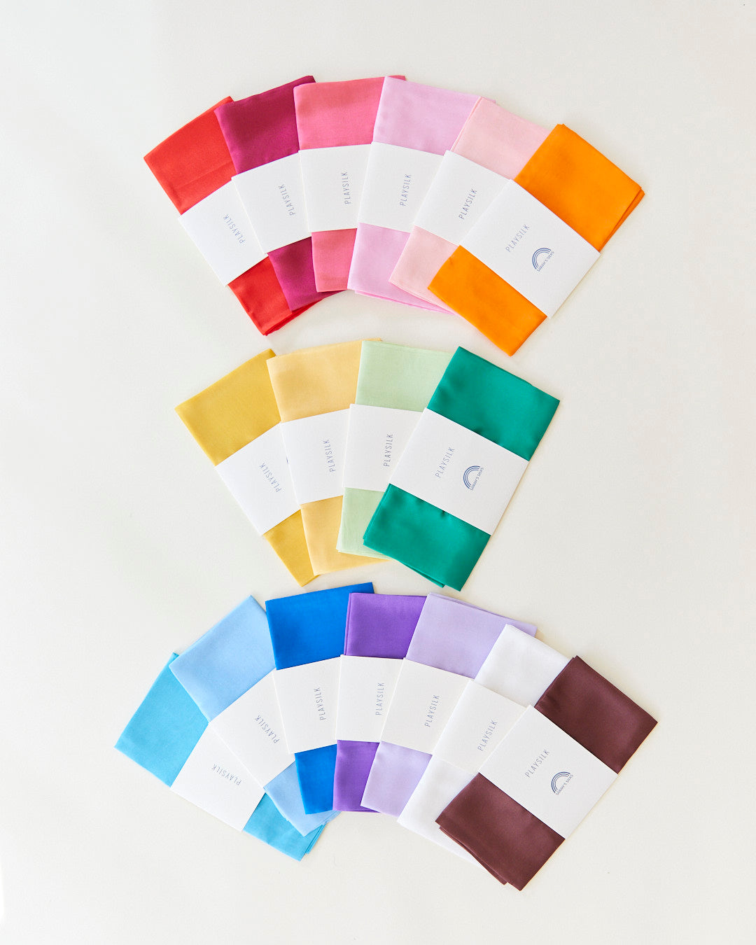 Enchanted Playsilks are 35 x 35-inch squares made from gorgeous, lightweight (5 momme) 100% pure silk.