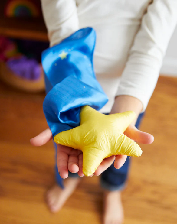 A "bonkless" rubber ball covered in silk, easy to throw by the tail and does not hurt when you get hit by it.