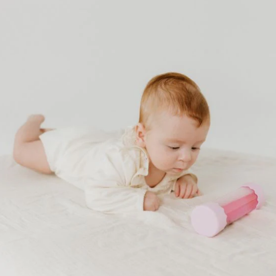 Babies are captivated by the swirling sparkles and glitter. The transparent design allows your little explorer to watch a symphony of colors, shapes, and textures swirling within, providing endless fascination and visual stimulation. It’s the perfect tummy time activity as they babies roll it back and forth on playmats.