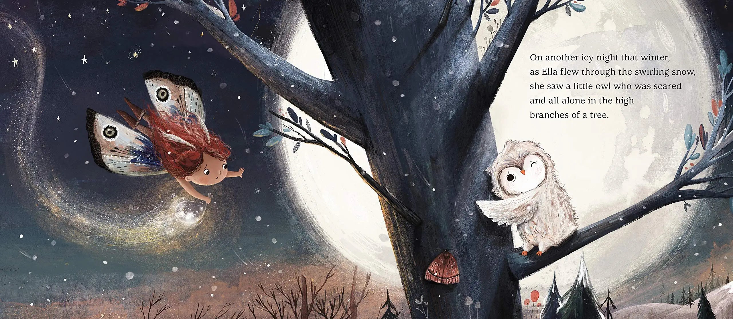 Ella has always dreamed of seeing the sunrise. But with her delicate gossamer wings, she can only come out at night. So, when the moon is high, she collects as many shimmering beams of light she can find – a twinkle from a star, the glow from a lamp post. With her light, she guides lost and lonely animals and finds friendship in Fox and Owl. And, together, Ella’s animal friends know just how to return her kindness...