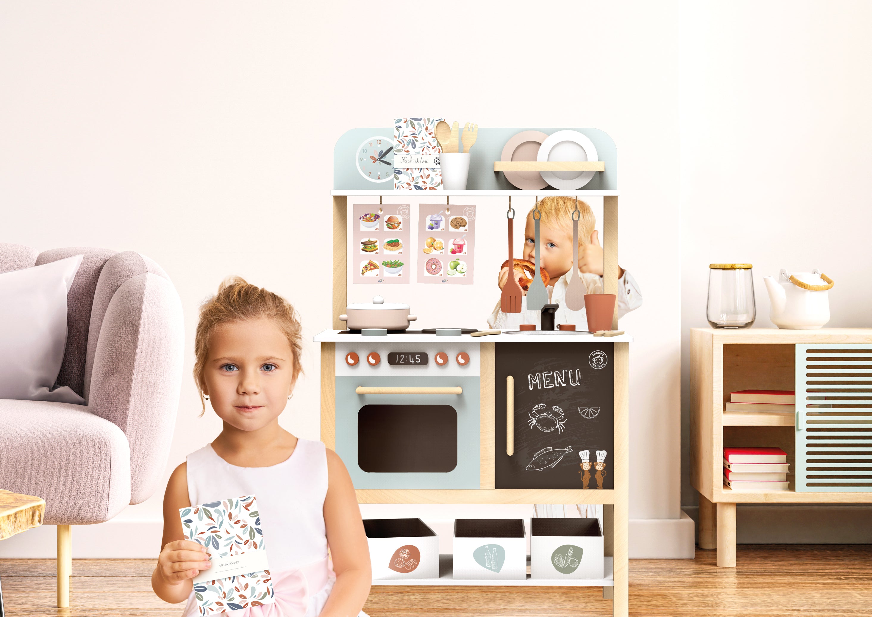 Children become little Chefs and pretend to cook food like adults, using their imagination, developing hands-on ability but also social skills.