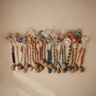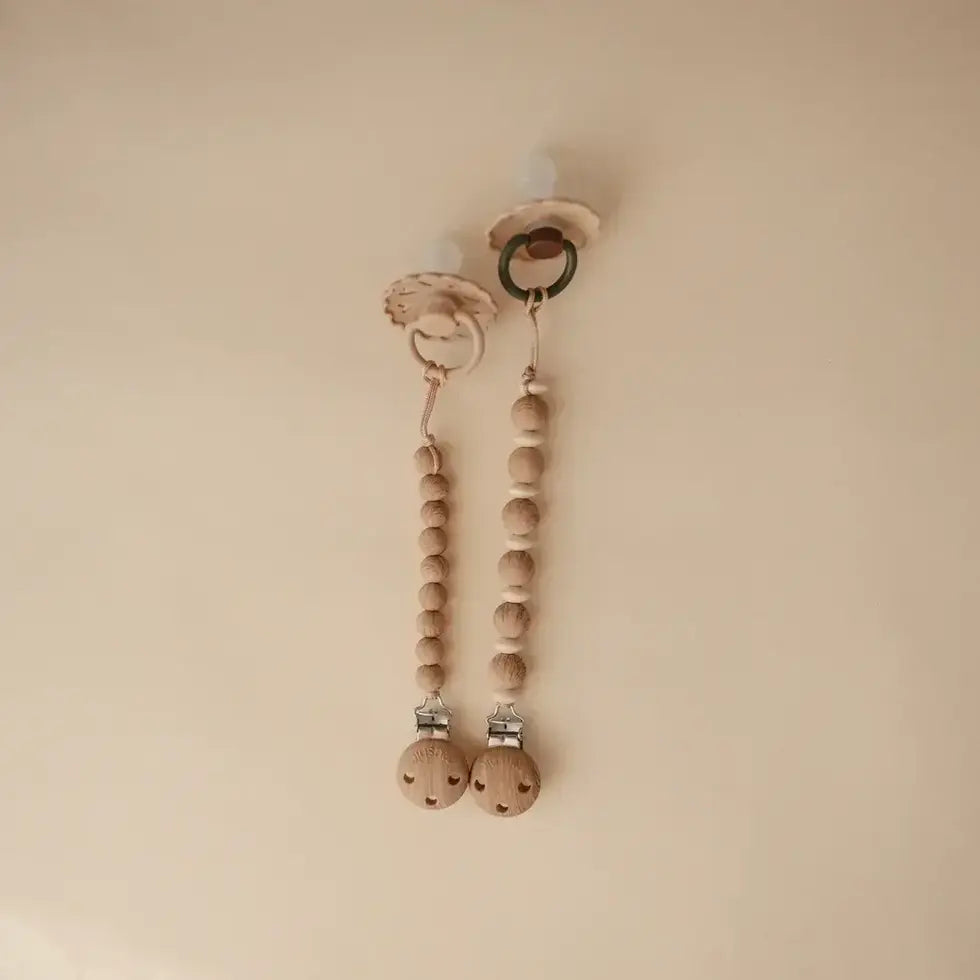 The Mushie silicone pacifier clip offers durability, function and simplicity to families on-the-go. Made from 100% food-grade silicone, our clip features a silicone clasp that brings a modern take to a traditional favorite. With two sizes of beads stacked in a simple pattern, the Luna clip is sure to become a favorite accessory for parents and littles alike. The clip is easy to clean and helps keep soothing items in reach for little ones.