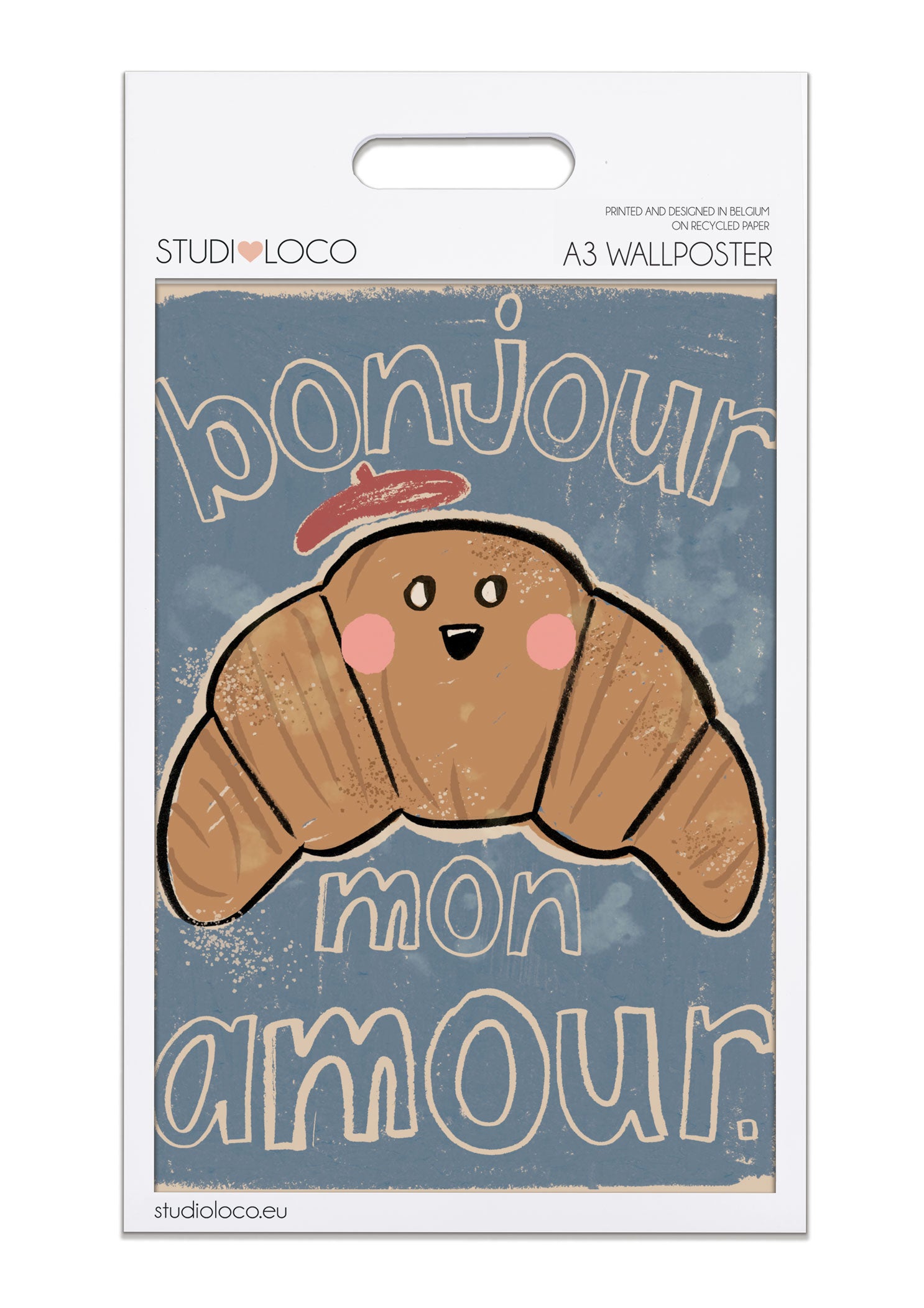 Add a touch of French charm to your child's room with this adorable croissant poster from Studioloco. Perfect for little dreamers, this stylish and playful illustration brings a unique and cheerful vibe to any space. The soft colors and cute design will captivate both children and parents.