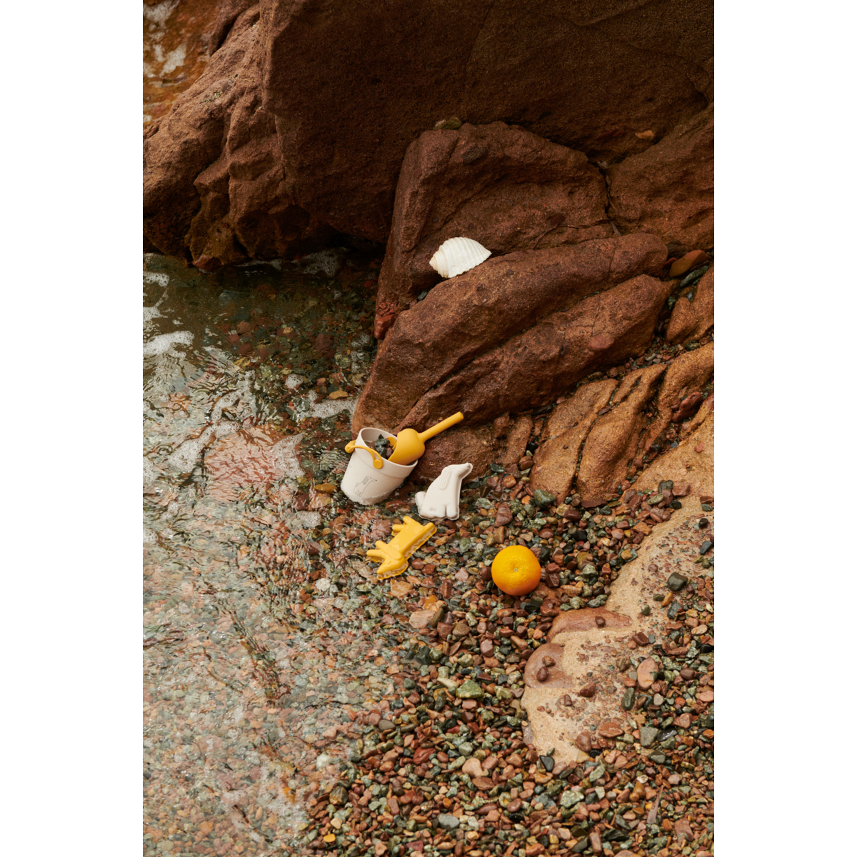 Ensure the entertainment for your mini during magical hours on the beach with the Kit mini beach set. The soft silicone set includes a bucket, a shovel and two playful seashell-themed moulds for your little one to use while exploring the sandy surroundings. Can also be used in the paddle pool for playing with water.