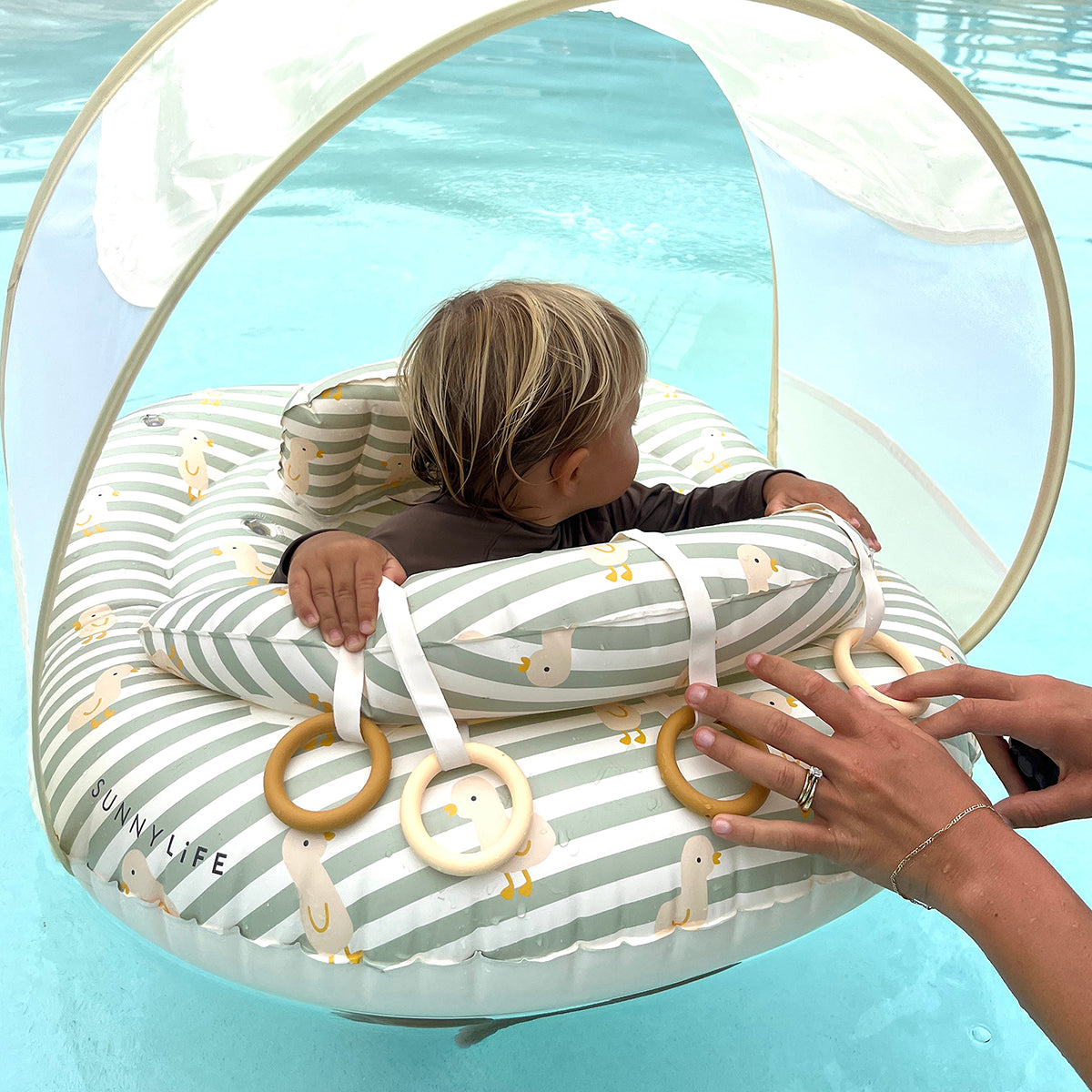 Sunnylife Interactive Baby Float Duck Sage Stripe