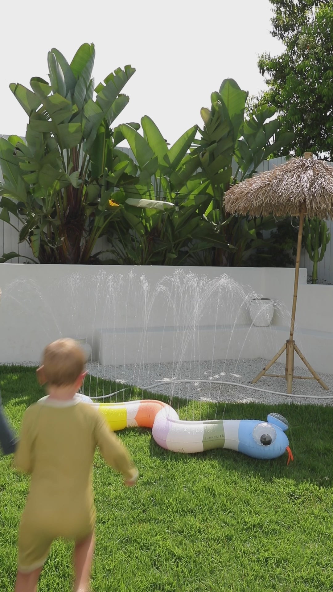 Sprinkle some fun for your little ones. The Into The Wild Inflatable Sprinkler is designed to refresh hot summer days and provide hours of water filled playtime. Lying low, ready to slither away, this larger-than-life sprinkler is sure to be a hit with kids and adults alike. Simply attach to your garden hose and play above the sun shower of water spraying from its body. Every little one needs a summer companion and this one will definitely turn heads with its hissing tongue and vibrant multi coloured and white maxi stripe print.