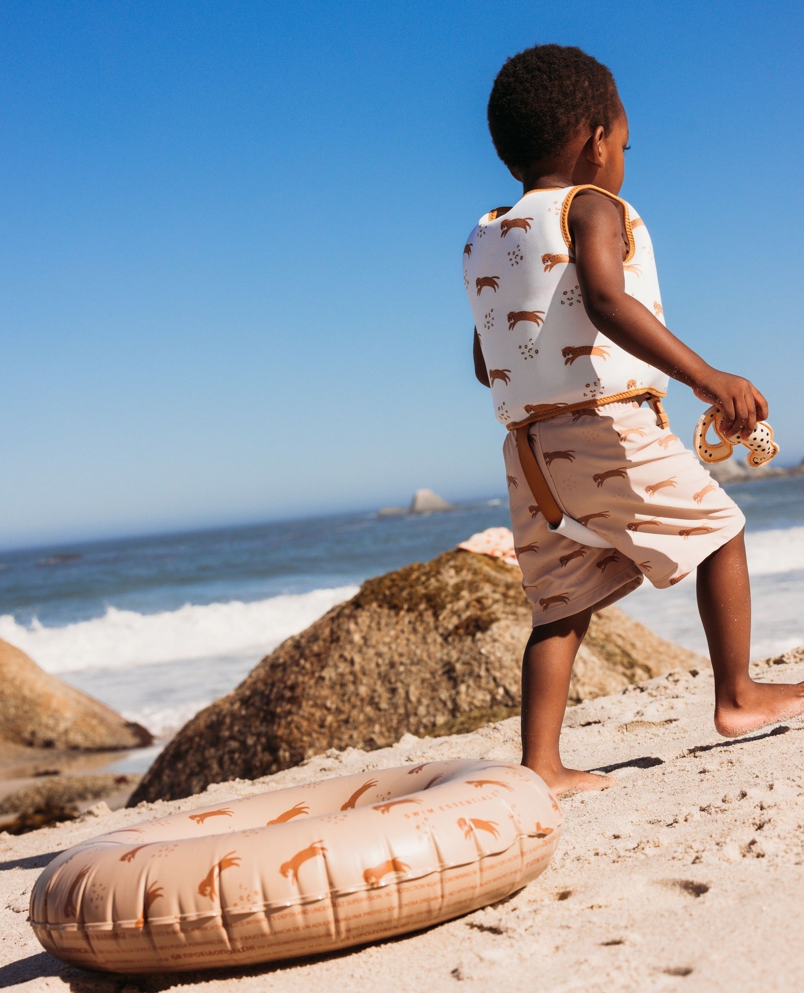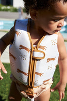 The Swim Abstract is a must-have for your child's swimming adventures! It's funky print featuring a leopard will make them stand out in the pool or at the beach. Designed with comfort in mind, this life jacket offers both style and safety for little ones aged 1-2 (0-15 kg).