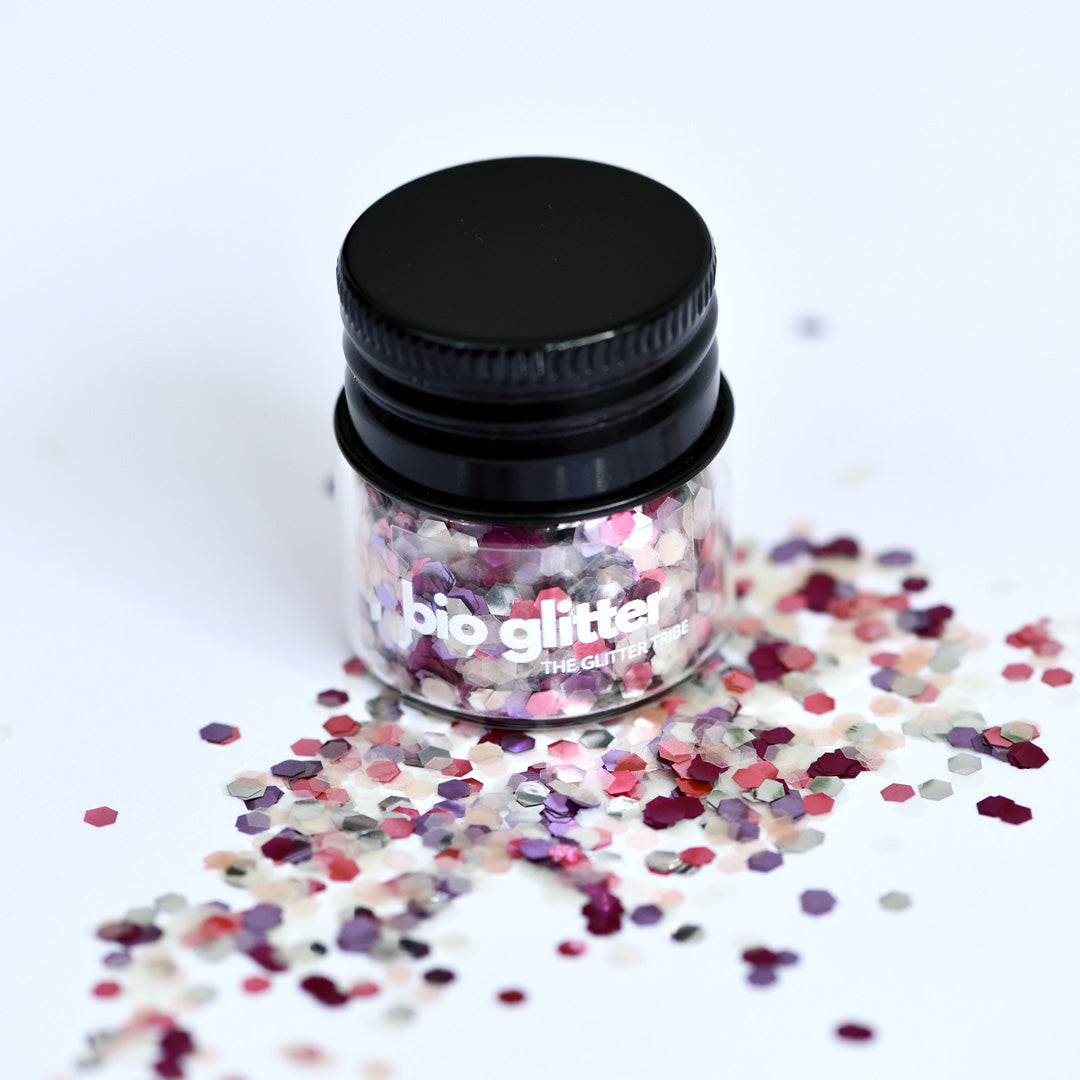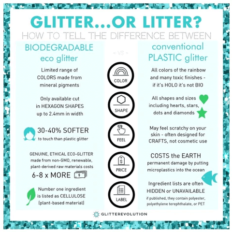 Bio-glitter® replaces the core polyester film used in traditional glitter. Bio-glitter® uses a unique and special form of cellulose from hardwoods, primarily eucalyptus sourced from responsibly managed and certified plantations operating to PEFC™ standards. This core, in its own right, possesses excellent eco-credentials. It is biodegradable in all environments; certified industrial and home compostable, approved soil, wastewater, freshwater and marine biodegradable.