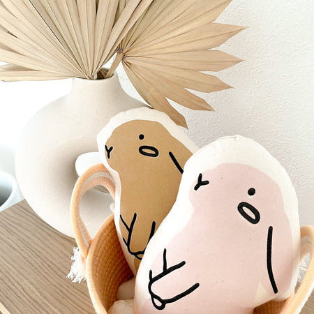 Sewn and screen printed by hand on peach cotton blend fabric by Kenyan artisans.
