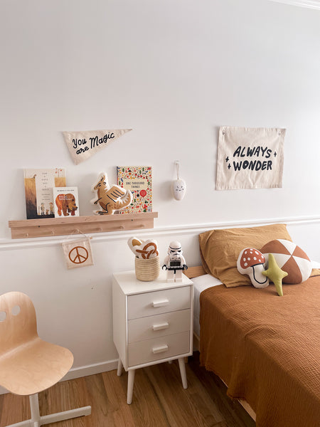 Sewn and screen printed by hand on natural canvas by Kenyan artisans.