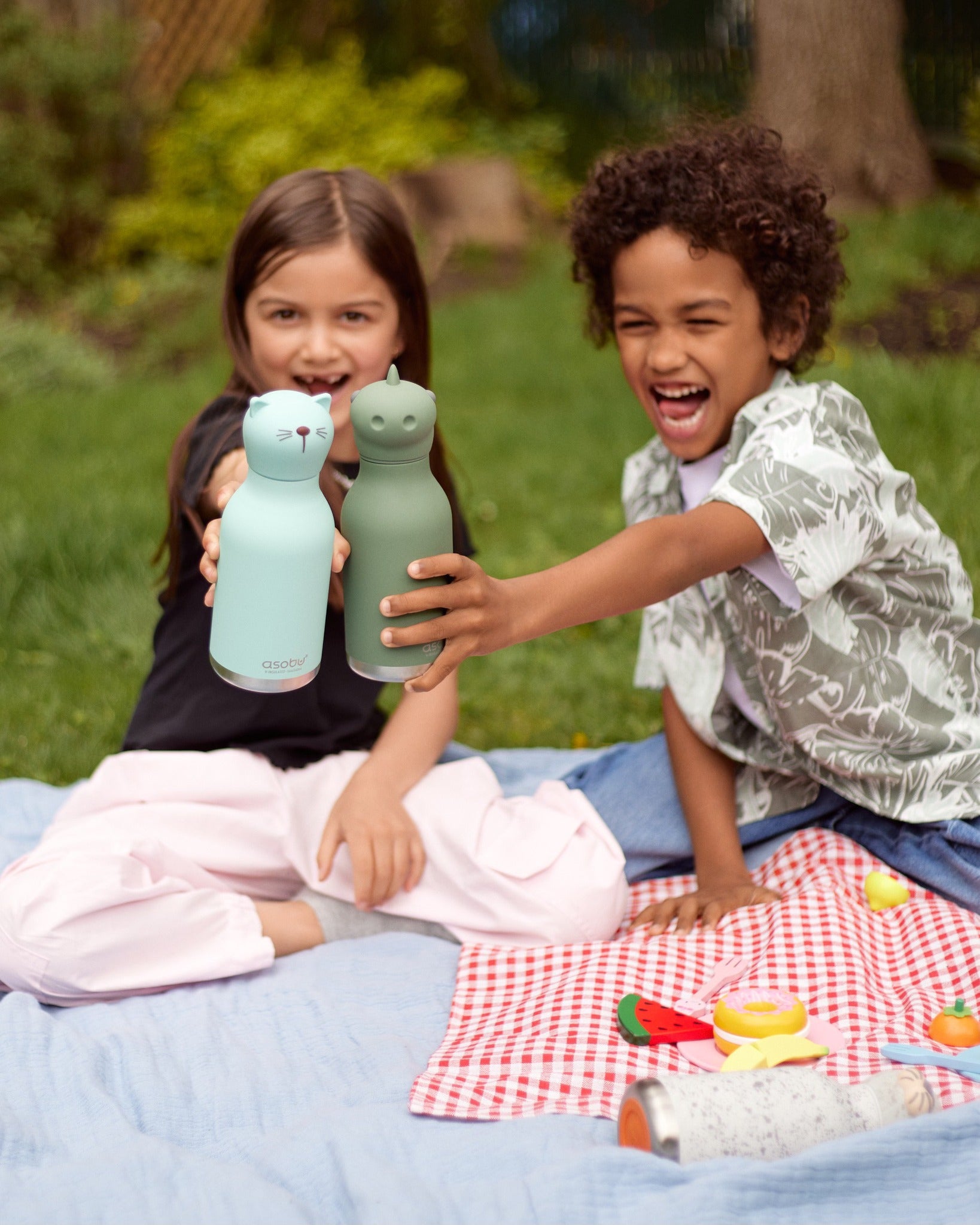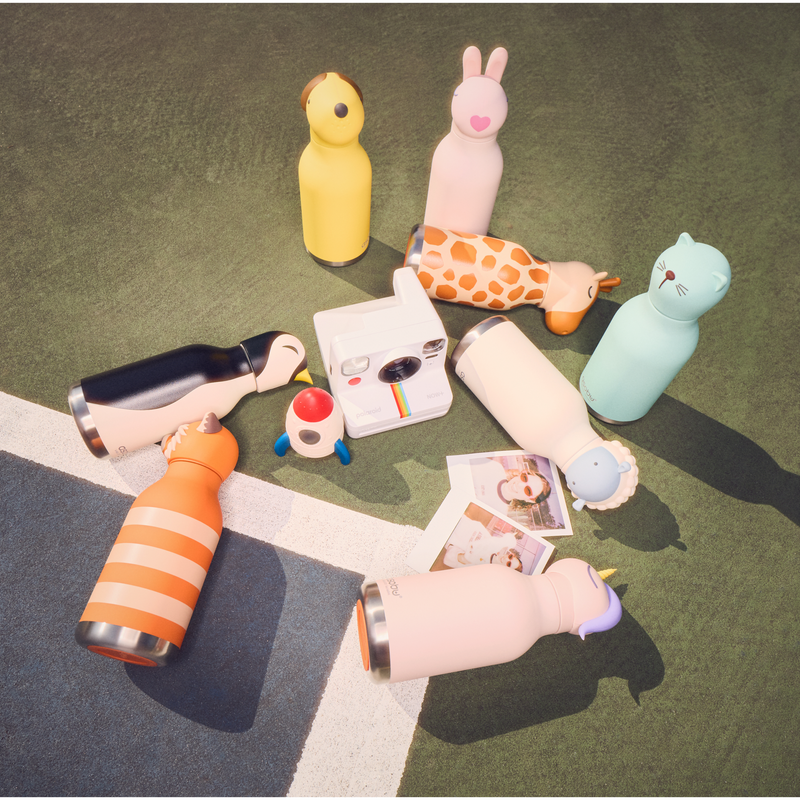 Made with a moisture-free, rubberised exterior, each bottle feels soft to the touch and is as practical as it is playful.