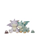 Binky Dragon Misty drifts through the Rainbow Realm in a haze of lavender dreams. With downy-soft lilac fur, sparkling embroidered eyes, and wings that shimmer like starlight, Misty loves curling up in cosy corners, dozing in warm laps, and being told gentle bedtime stories.