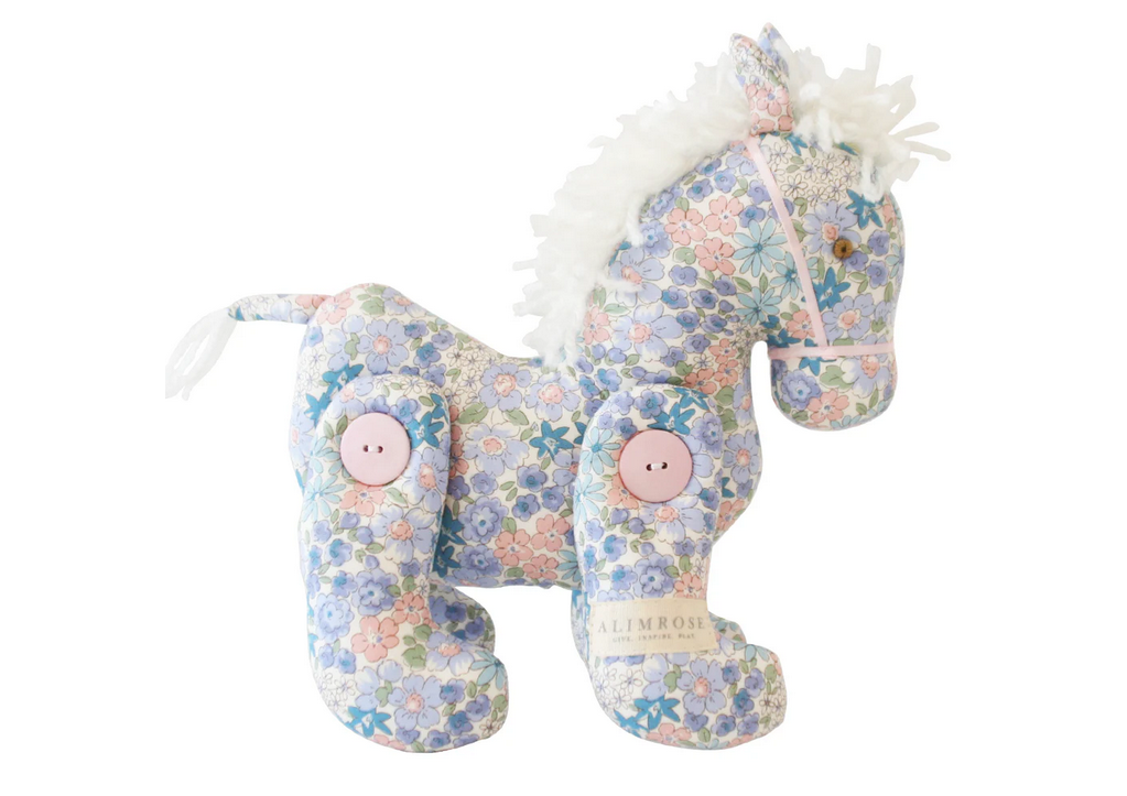 Say hello to the Alimrose Jointed Pony, a delightful addition to your little one’s world. At 22cm tall, this beautifully crafted pony is made with a cotton outer and features a soft yarn mane for endless charm. With cute buttoned legs that move, it’s perfect for imaginative play from 3 years and makes a gorgeous nursery décor piece until then.