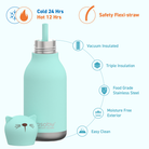 Stainless steel water bottle with an adorable soft-touch character head on the lid.