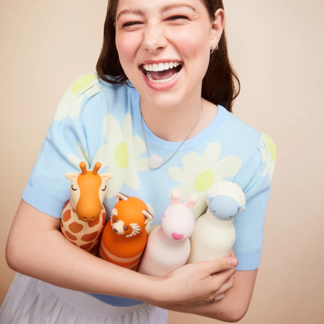 Made with a moisture-free, rubberised exterior, each bottle feels soft to the touch and is as practical as it is playful.