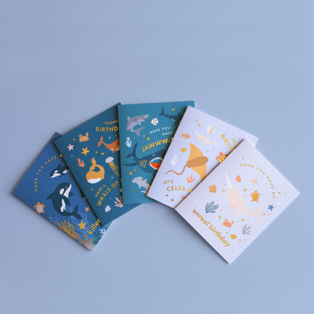 Format: 108 x 140mm / 4.25 x 5.5 inches. Material: Uncoated Card Stock. Process. Full-color + Foil Stamp. Features: Blank Interior. Foil: Gold Metallic Foil. Envelope: Cream. Origin: Made in Australia.