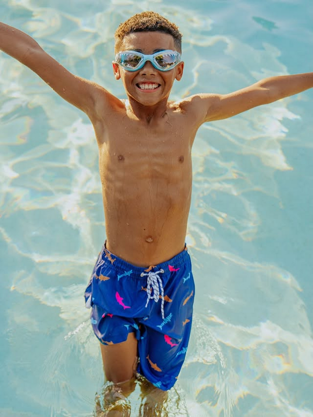 Shark Attack! Jawsome is styled with a razor sharp teeth pattern printed lens and googly eyed décor resting on the frame.Bling2o’s Jawsome swim goggle is a must have for any shark fan.