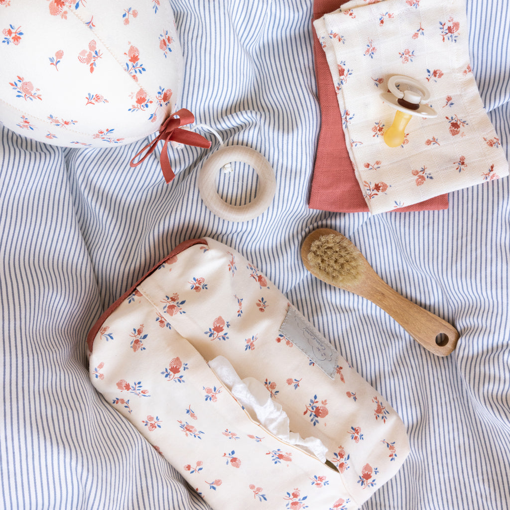 The cover fit most standard sizes wet Wipe packs, and can be used by the changing table or on the go in your diaper bag. The cover has a practical carry strap in canvas on the side.