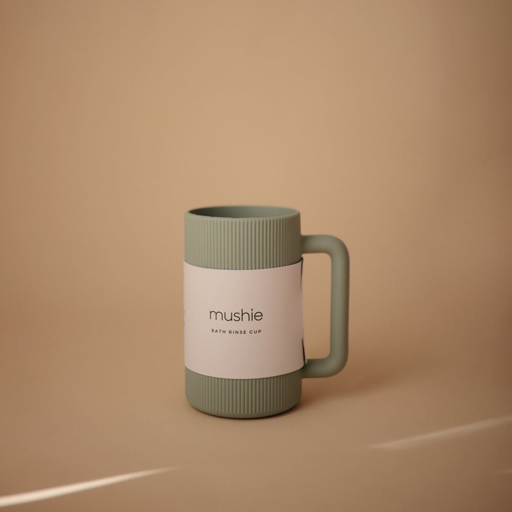 Made from food grade silicone and featuring calming colors, the Mushie bath rinse cup helps children enjoy bath time and end the day extra clean.