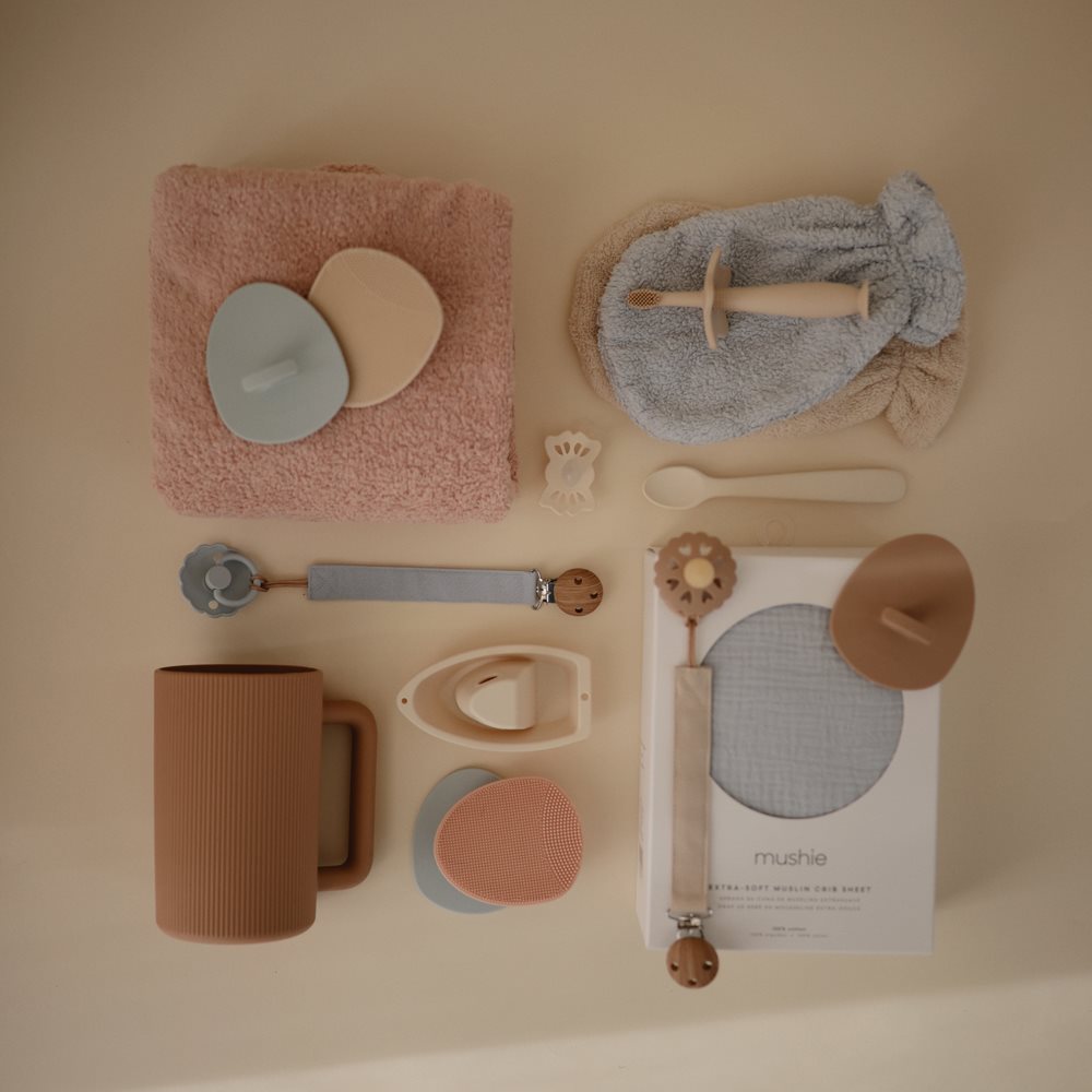 Made from food grade silicone and featuring calming colors, the Mushie bath rinse cup helps children enjoy bath time and end the day extra clean.