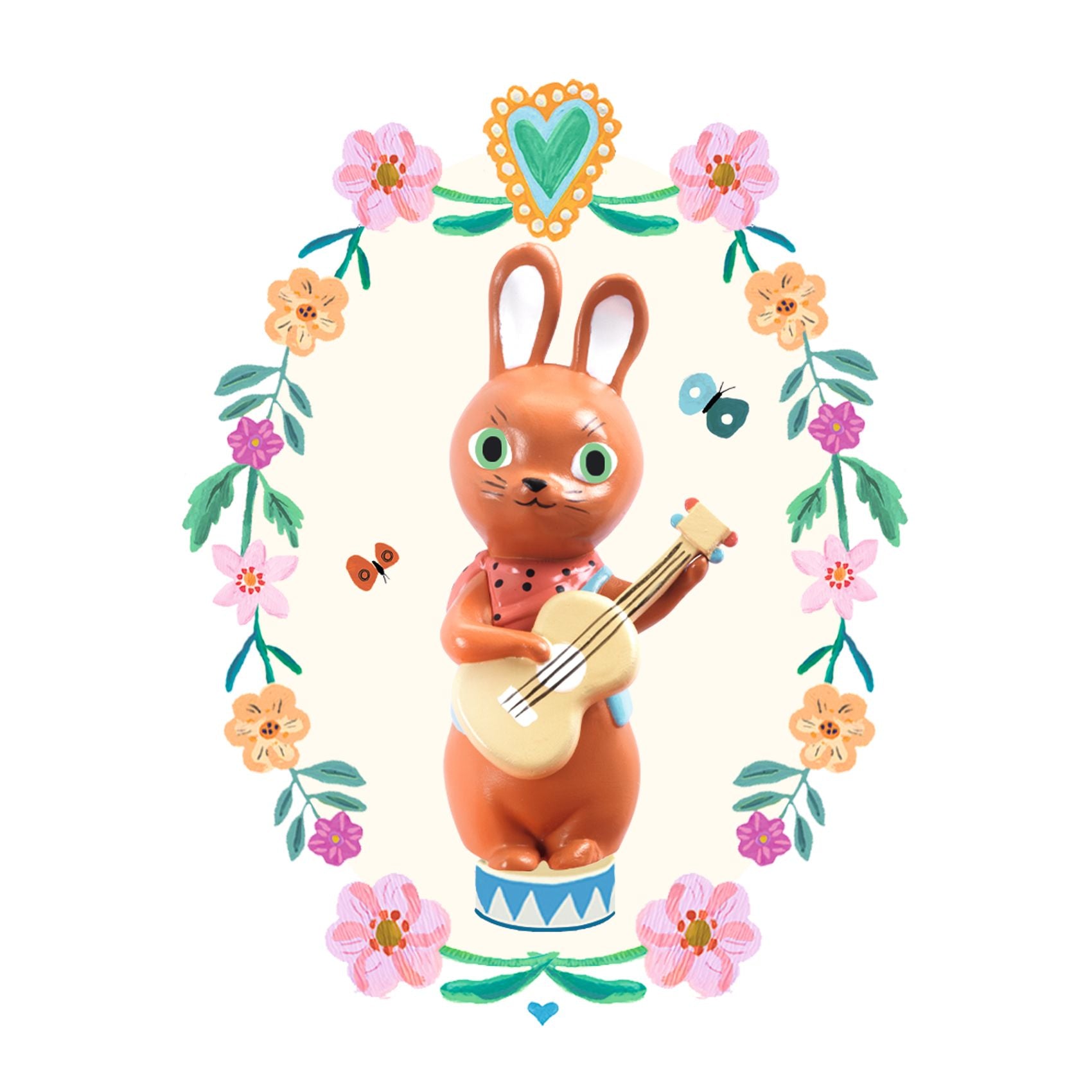 Roulotte enchantée is a pretty, caravan-shaped music box for keeping jewellery and secret things in. Turn the handle and open the box for a surprise! A delicately carved rabbit turns, reflected in a shaped mirror, to Antoine Ronzon’s “Le temps des cerises”.