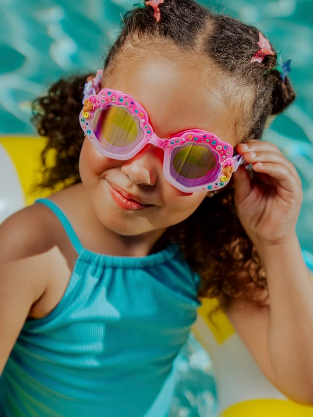 Dive into aquatic adventures with the Enchanted Shimmer Seashell Kids' Swim Goggles. Designed with vibrant pink tones and sea shell these goggles bring a pop of color to your child's swimming experience. The convenient back clip ensures a secure and comfortable fit, while the anti-fog lenses provide crystal-clear vision underwater. Offering UV protection for sunny pool or beach days, these goggles are perfect for swim lessons, pool play, and seaside fun. Let your little one make waves in style with these eye-catching swim goggles.