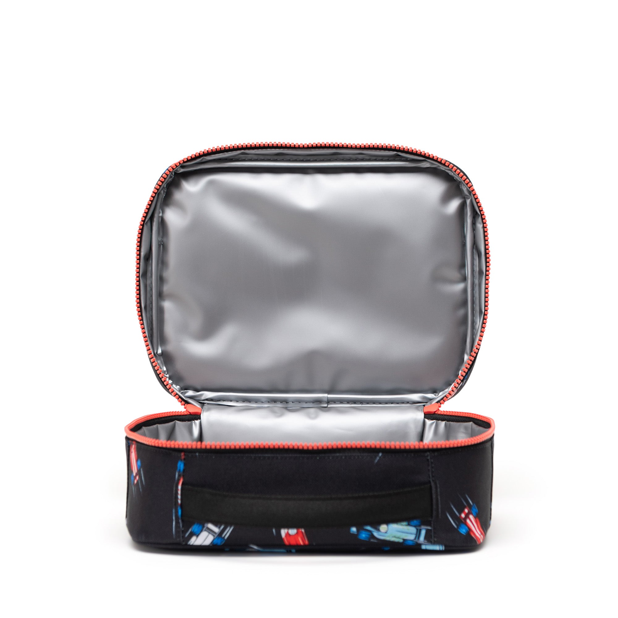 Their lunchtime companion. Made from recycled EcoSystem™ fabrics, this durable lunch box holds snacks and sandwiches in an insulated main compartment that wipes clean. Bring it to a picnic or on journeys to the playground, cafeteria and beyond.