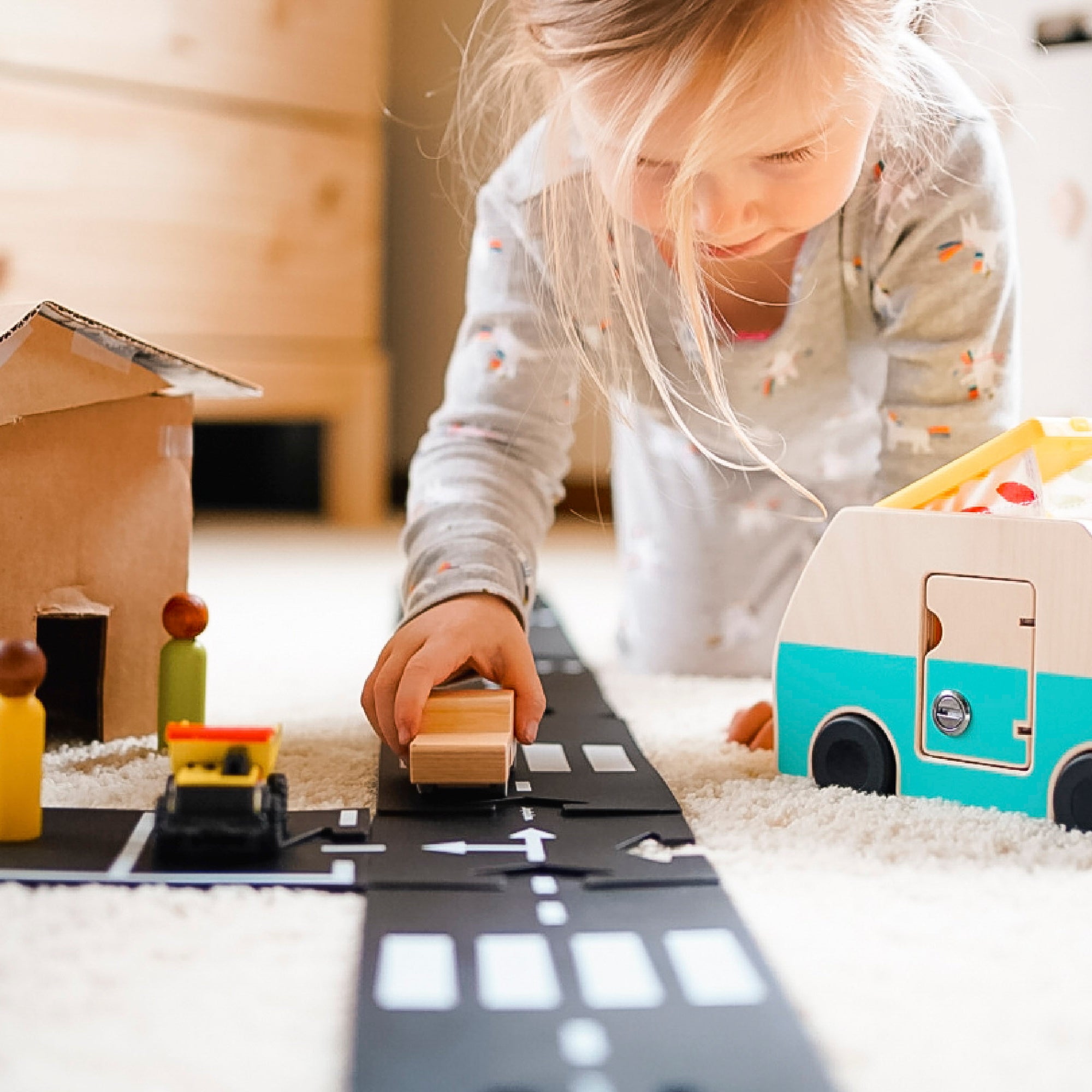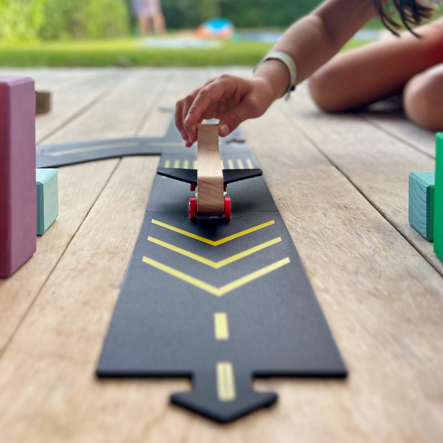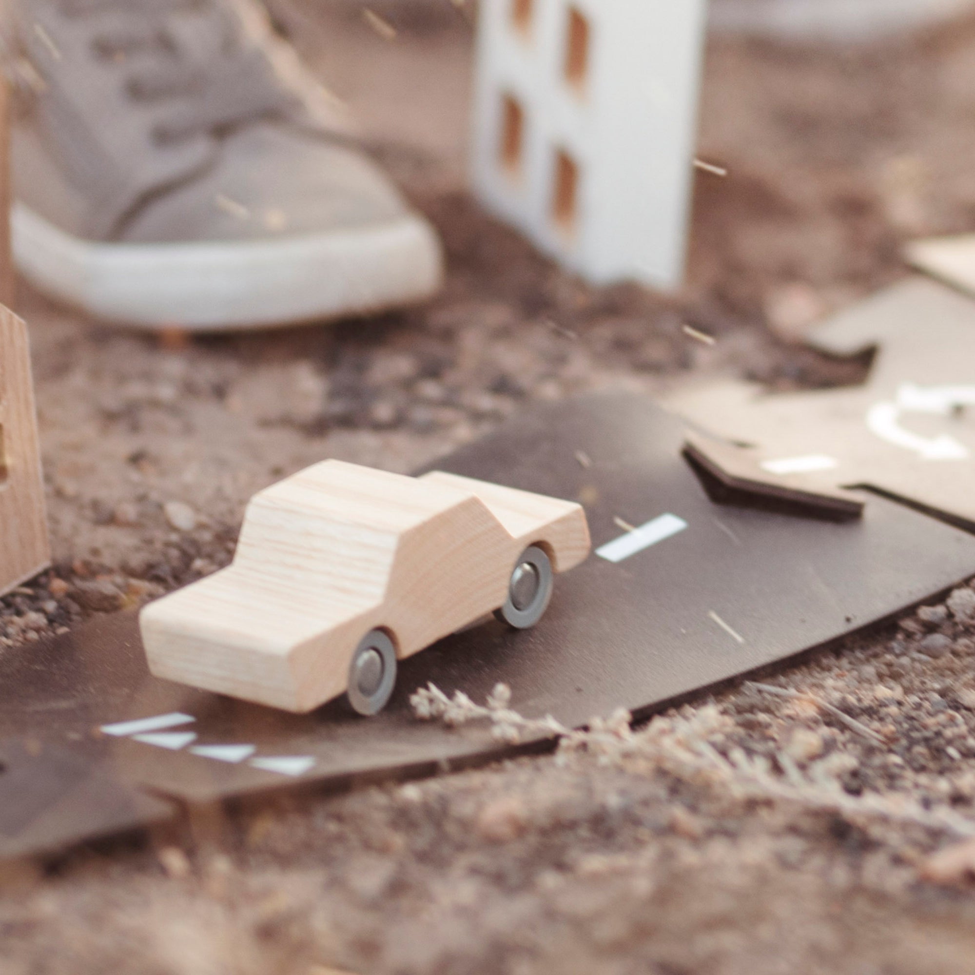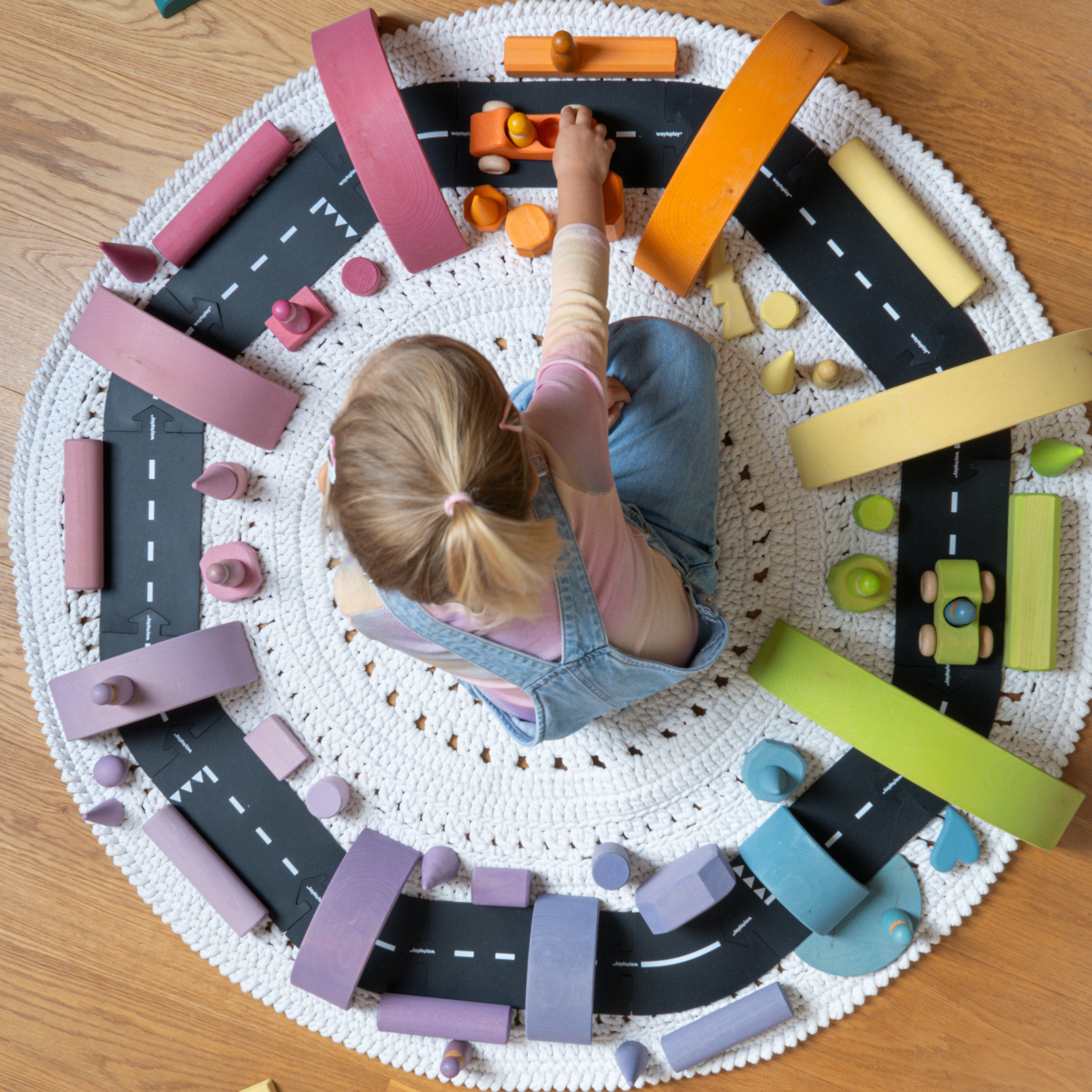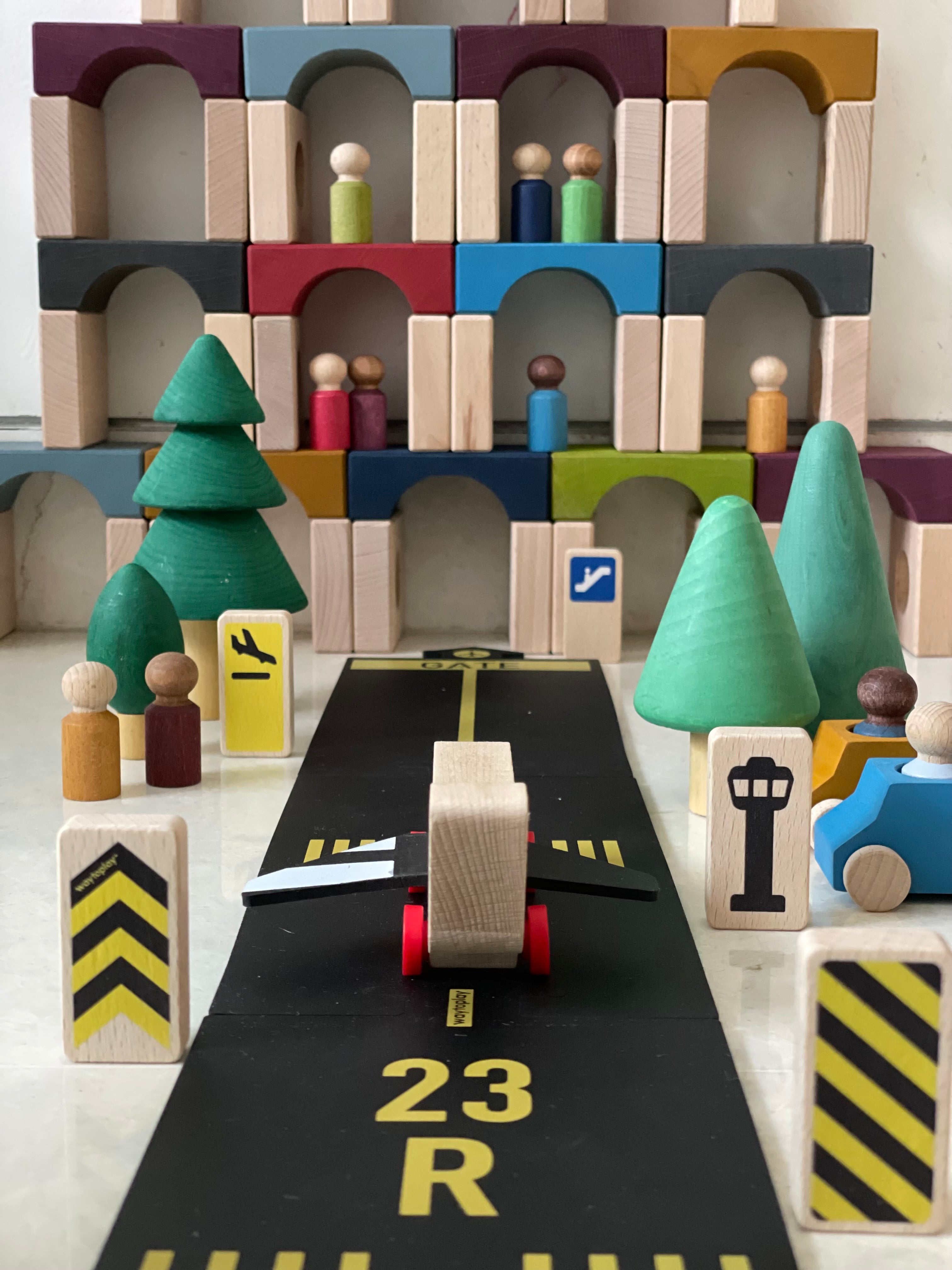 This unique wooden airplane, crafted from sustainable beech wood with upcycled wings made from Waytoplay's own misprinted road pieces, inspires endless imaginative adventures. The flexible wings let your child fly through the skies! Eco-conscious and bursting with fun, the Flyer is ready for takeoff!
