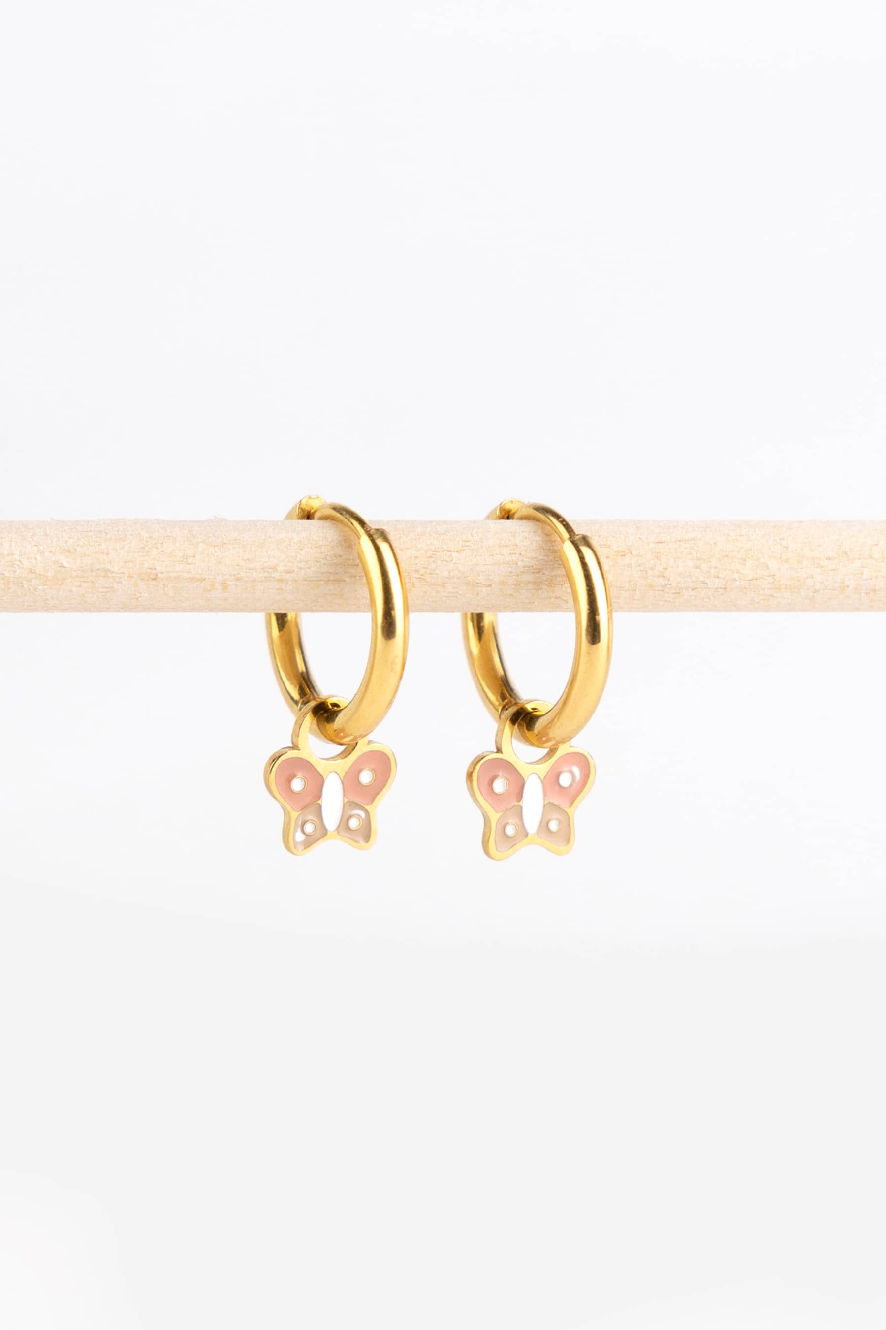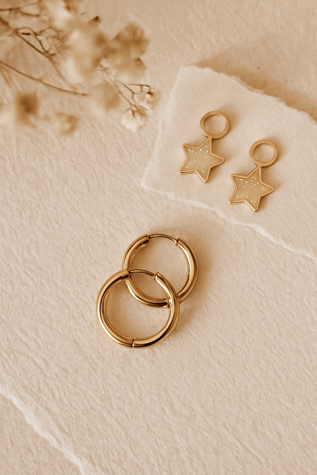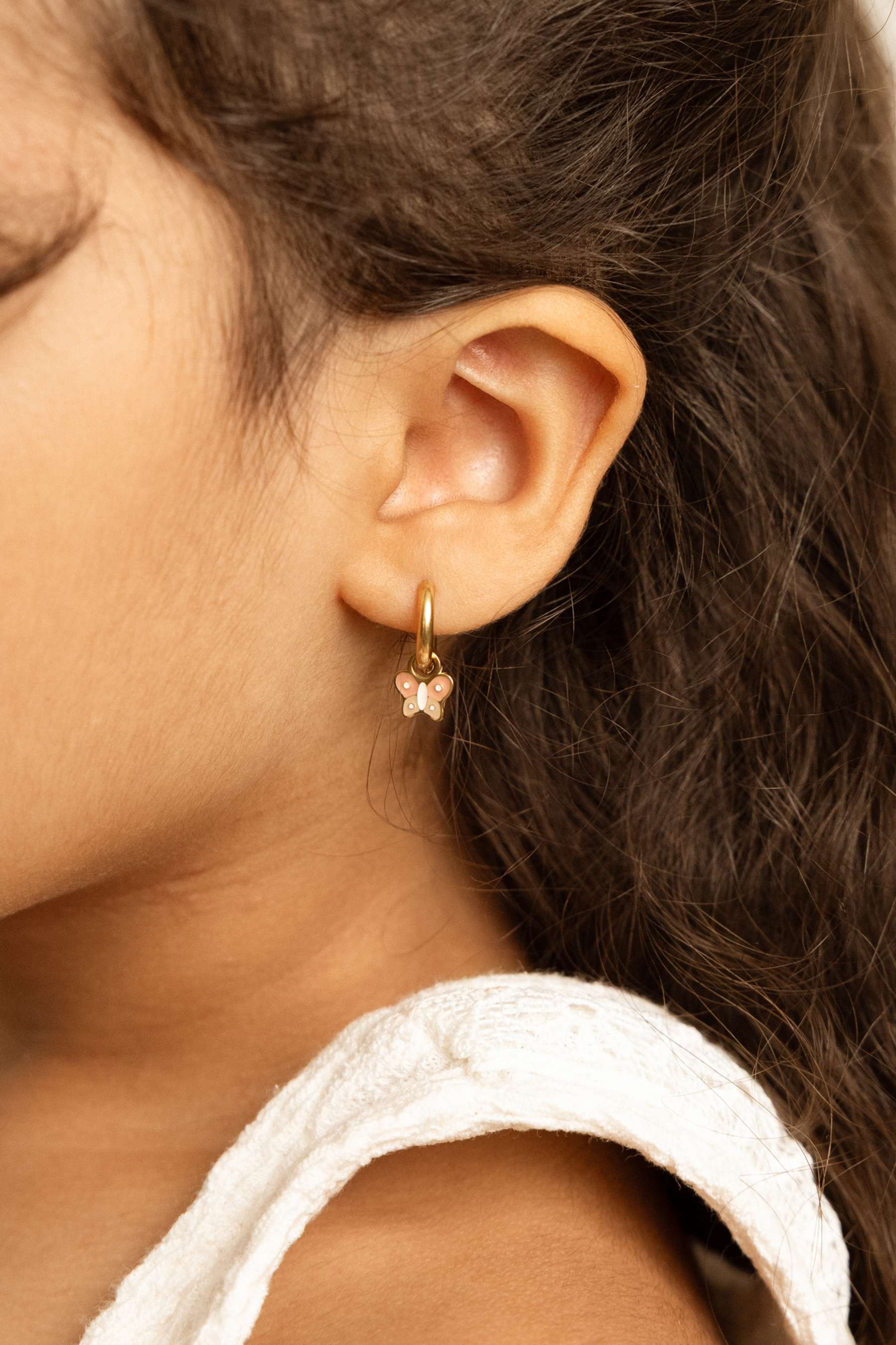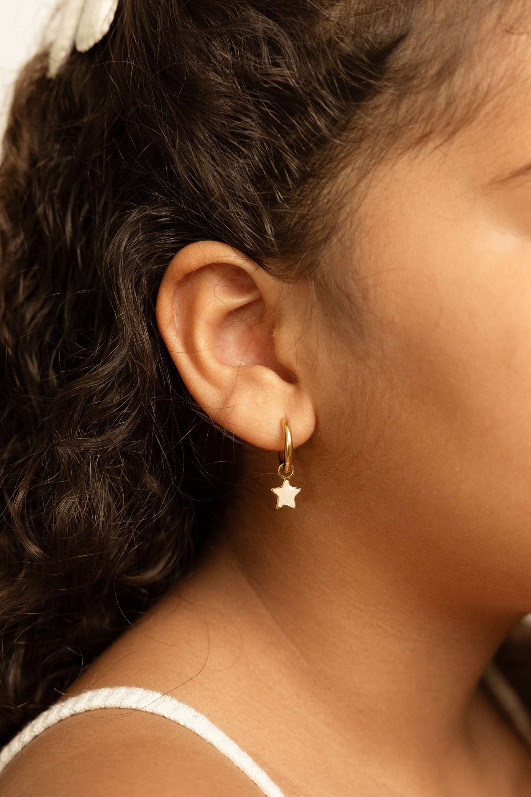Designed with little ones in mind, these timeless hoops and mix and match charms are the perfect everyday accessory. Crafted from gold-plated stainless steel, they are hypoallergenic, water-resistant, and safe to wear 24/7 — even for kids with sensitive ears.
