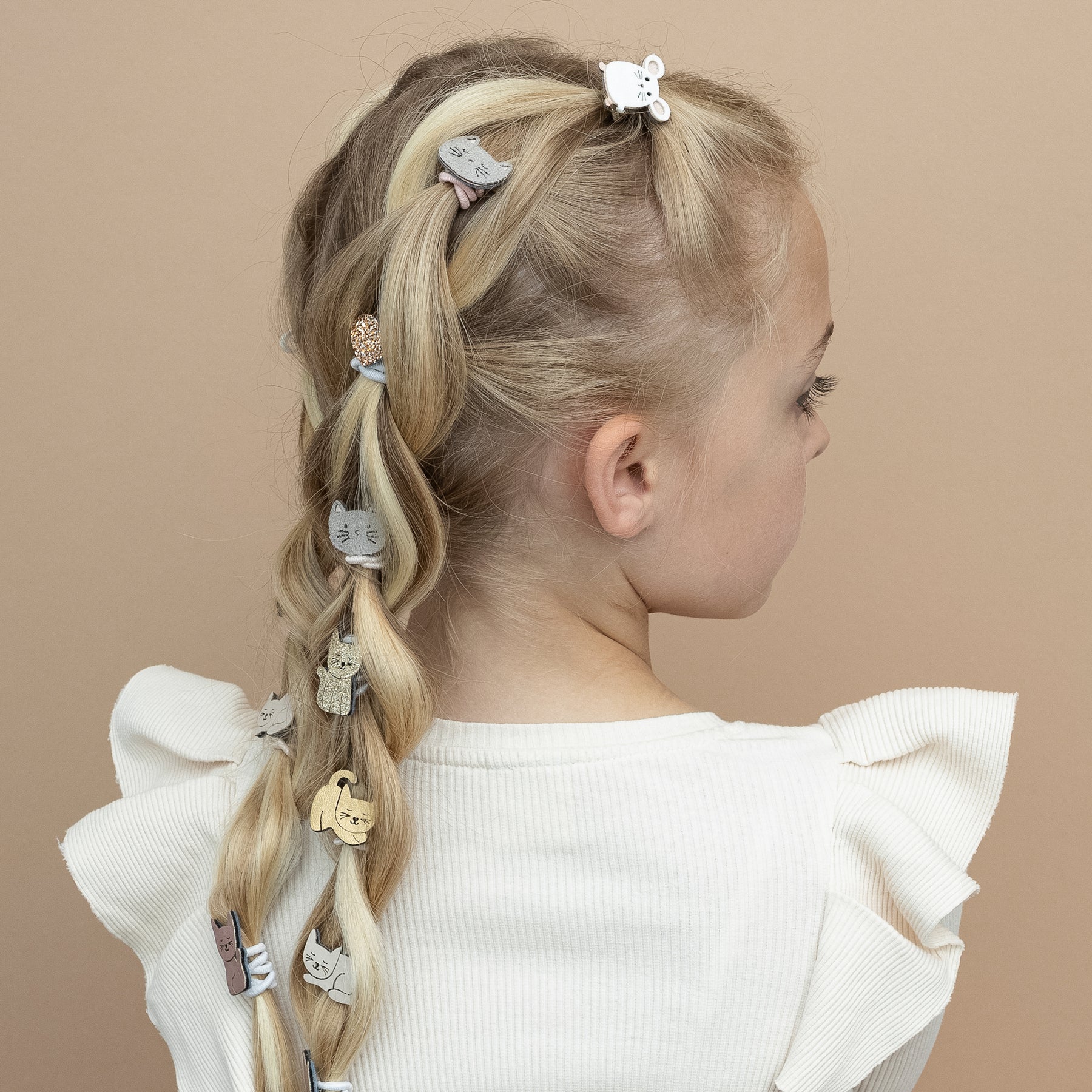 Say hello to our oh-so-cute Cat & mouse mini ponies! Four soft little pussycat faces, two sweet little mice and two golden glittering hearts - mix and match for all sorts of adorable styles!