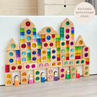With the building game collector’s box, a magical gaming pleasure is created! The combination of classic building blocks, sparkling peephole blocks and colourful triangles invites you to build creatively. The colourful elements make children’s eyes light up and create ever new, imaginative buildings!